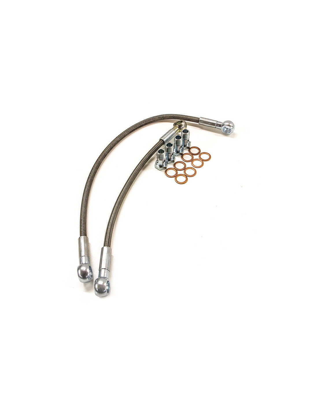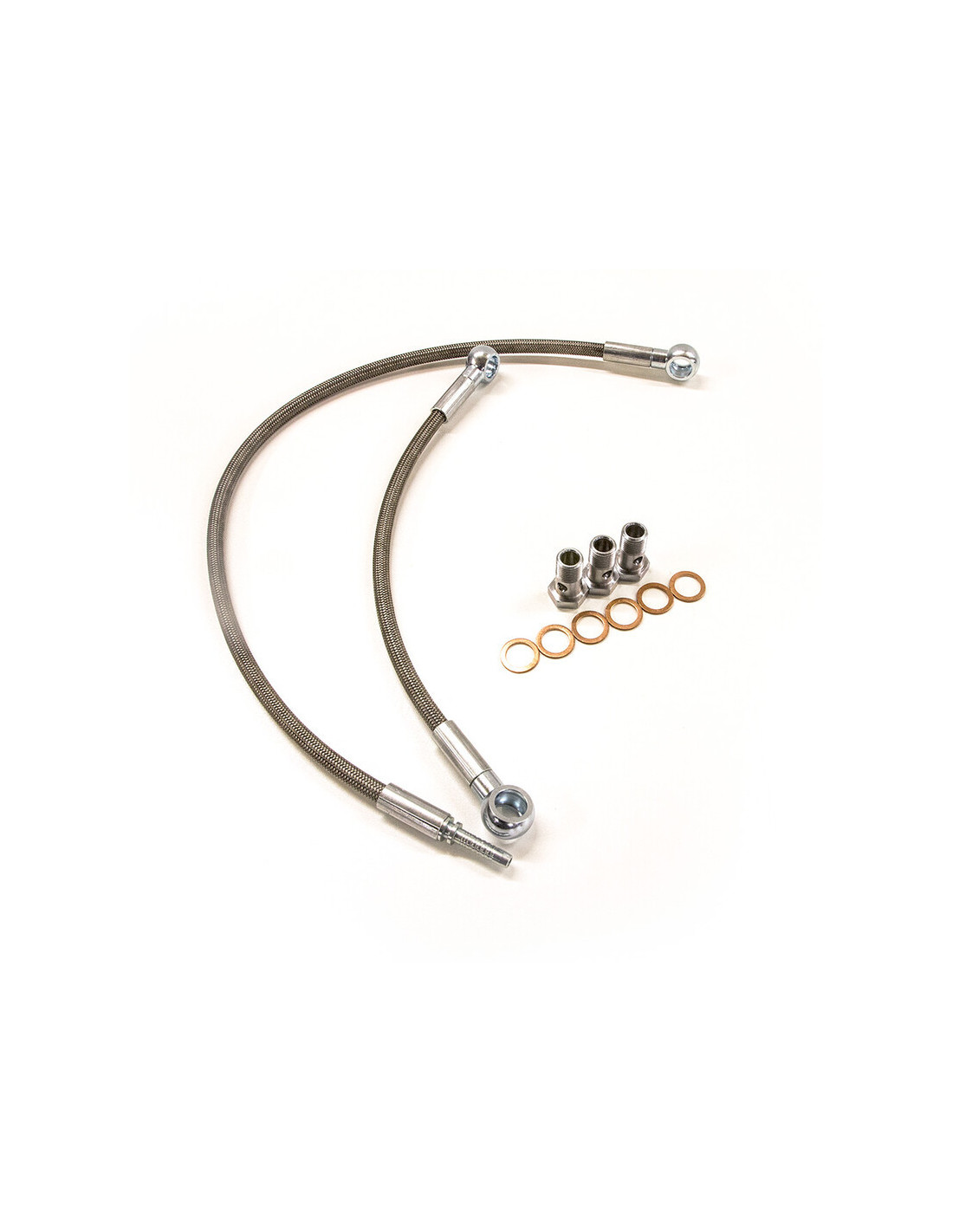 Braided Water Turbo Feeds for CA18DET / SR20DET / RB25DET (Flexible Aviation Grade)The original water and turbo hoses are rigid, which often tend to crack with age, temperature and when removing/fitting the turbo. These braided hoses are reinforced, flexible and easily replace the OEM lines :