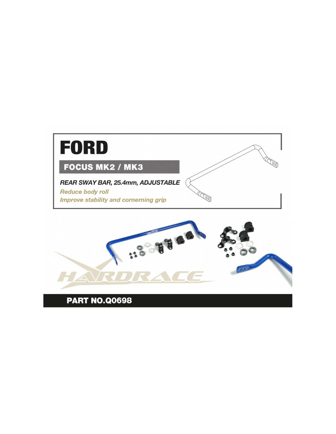 Hardrace Stabilizer Bar for Ford, Mazda, Volvo. Ideal for improving steering precision, ride stability, and response. Manufacturer's Specifications : - 25.4 mm 13 PCS/SET * Suitable for 90° ball joint Type end links only * Focus: Not for MK2 RS & MK3 ST/RS