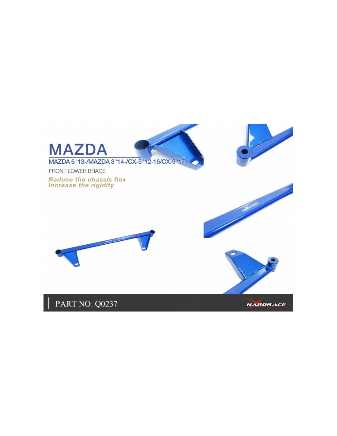 Hardrace strut brace for Mazda. Ideal for improving steering precision, stability, and response. Manufacturer's description: - 1 PCS/SET