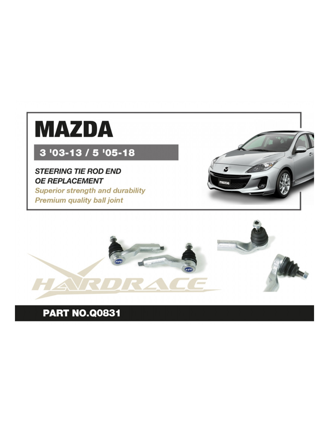 RC Hardrace Tie Rod End for Mazda 3, 5. Ideal for improving driving precision, ride stability and steering response. Manufacturer's Specifications : - OE Style 2PCS/SET