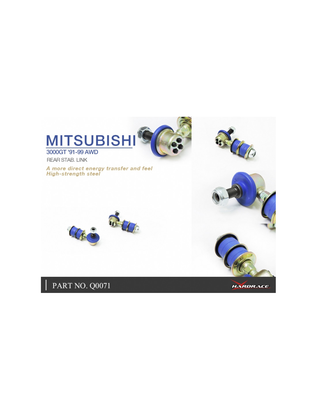 Hardrace sway bar link for Mitsubishi 3000GT/GTO. Ideal for improving steering precision, ride stability, and response. Manufacturer's description: - 2 PCS/SET FOR AWD USE