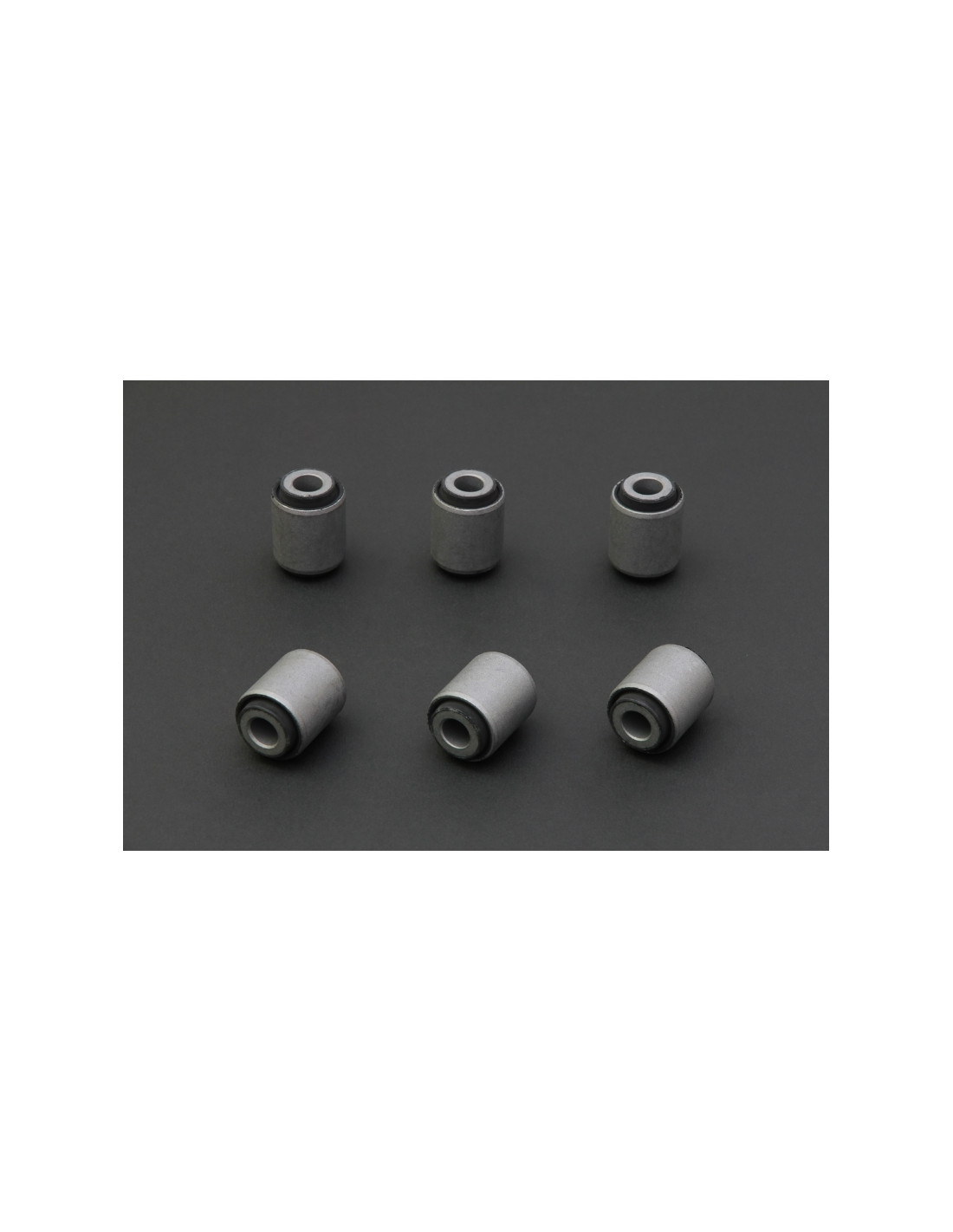 Hardrace silent block for Nissan 240SX, Skyline, Z-series. Ideal for improving driving precision, trim stability and steering response. Features from the manufacturer (original description in English): - Harden Rubber Equipped. 6 PCS/SET