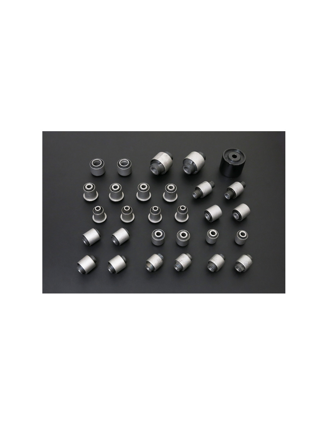 Hardrace silent block for Infiniti G series, Nissan Skyline, Z-series. Ideal for improving driving precision, trim stability and steering response. Features from the manufacturer (original description in English): - Harden Rubber 29 PCS/SET