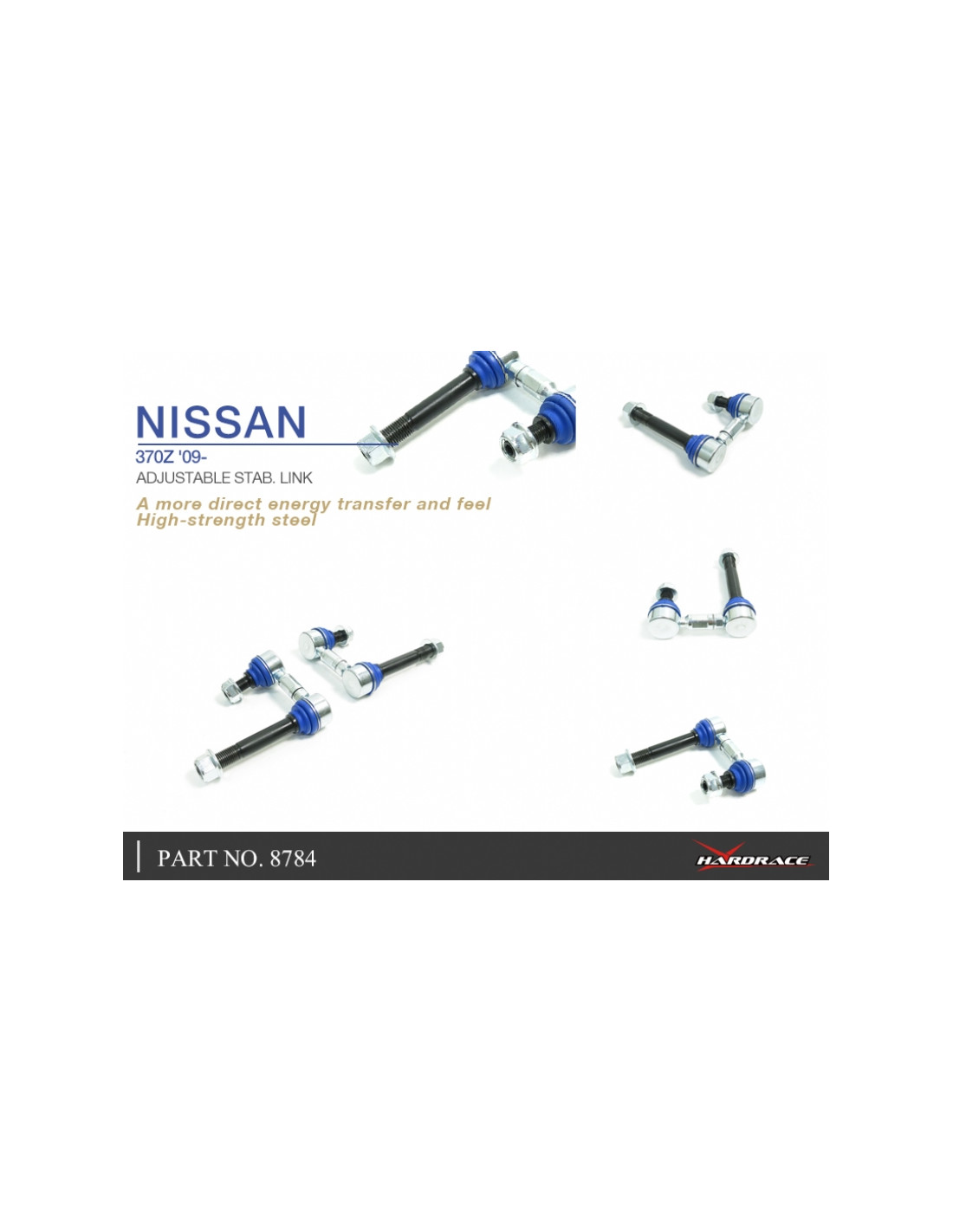 Hardrace Stabilizer Bar Link for Infiniti Q50, Nissan Skyline, Z-series. Ideal for improving steering precision, ride stability, and response. Manufacturer's Specifications : - 2 PCS/SET *Q50 '13- : For 3.5L/3.0L Use