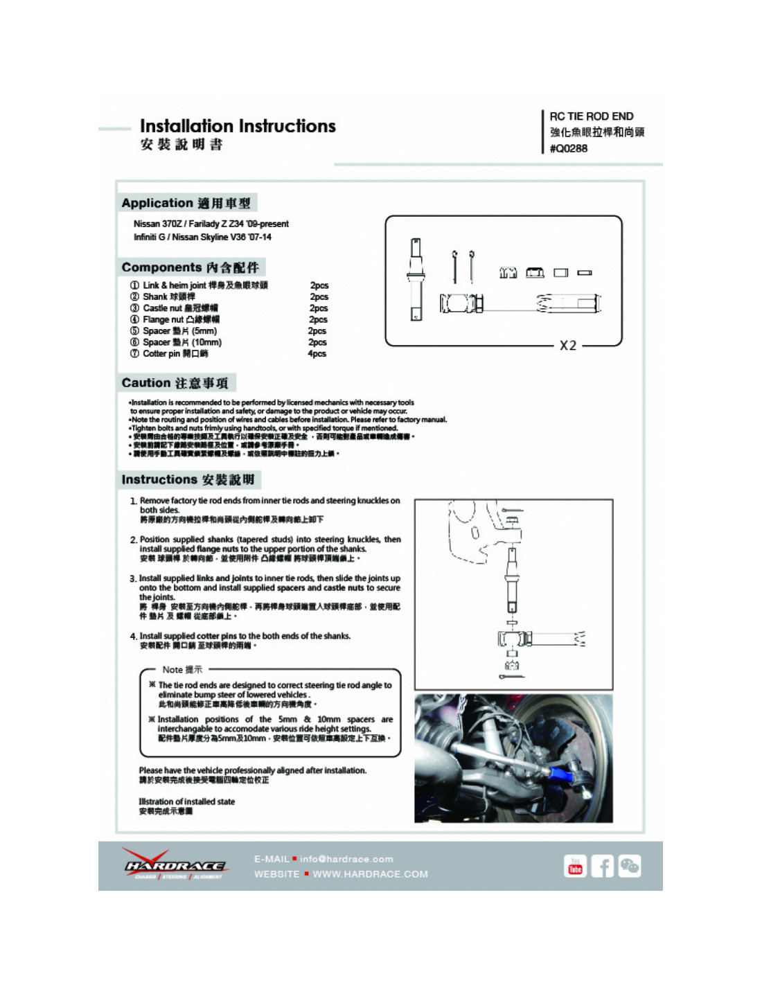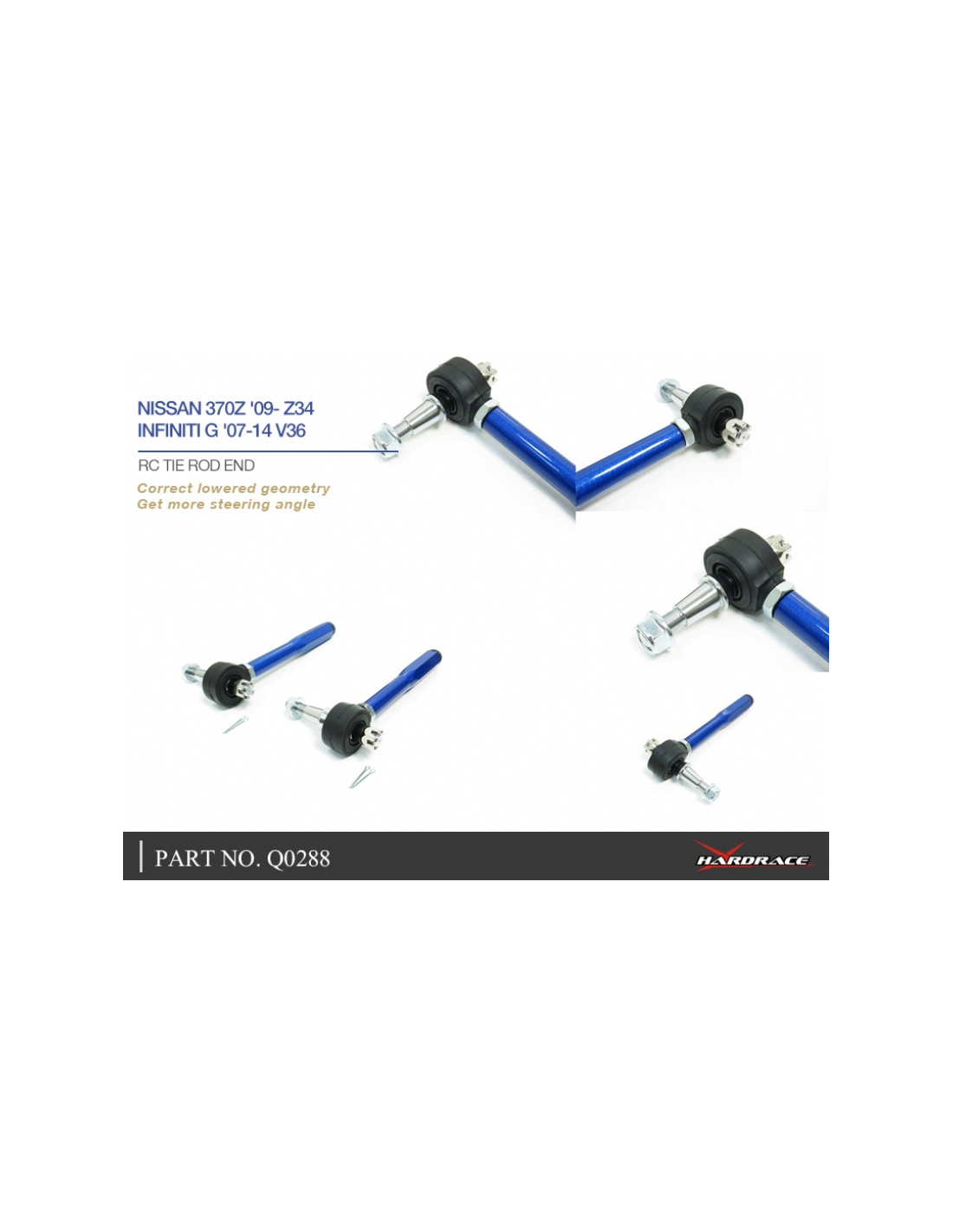 RC Hardrace Tie Rod End for Infiniti, Nissan. Ideal for improving driving precision, ride stability, and steering response. Manufacturer's Description: - For Lowered Suspension Use. Pillow Ball Equipped. 2 PCS/SET.