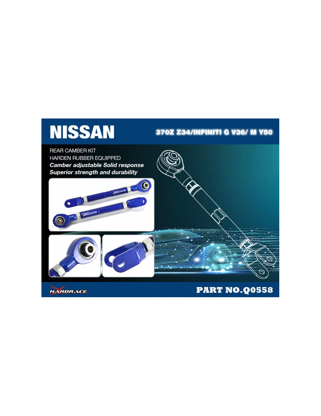 Hardrace suspension arm for Infiniti G series, M series, Nissan Skyline, Z-series. Ideal for improving steering precision, stability, and response. Manufacturer's specifications : - Pillow Ball Equipped 2 PCS/SET V2.
