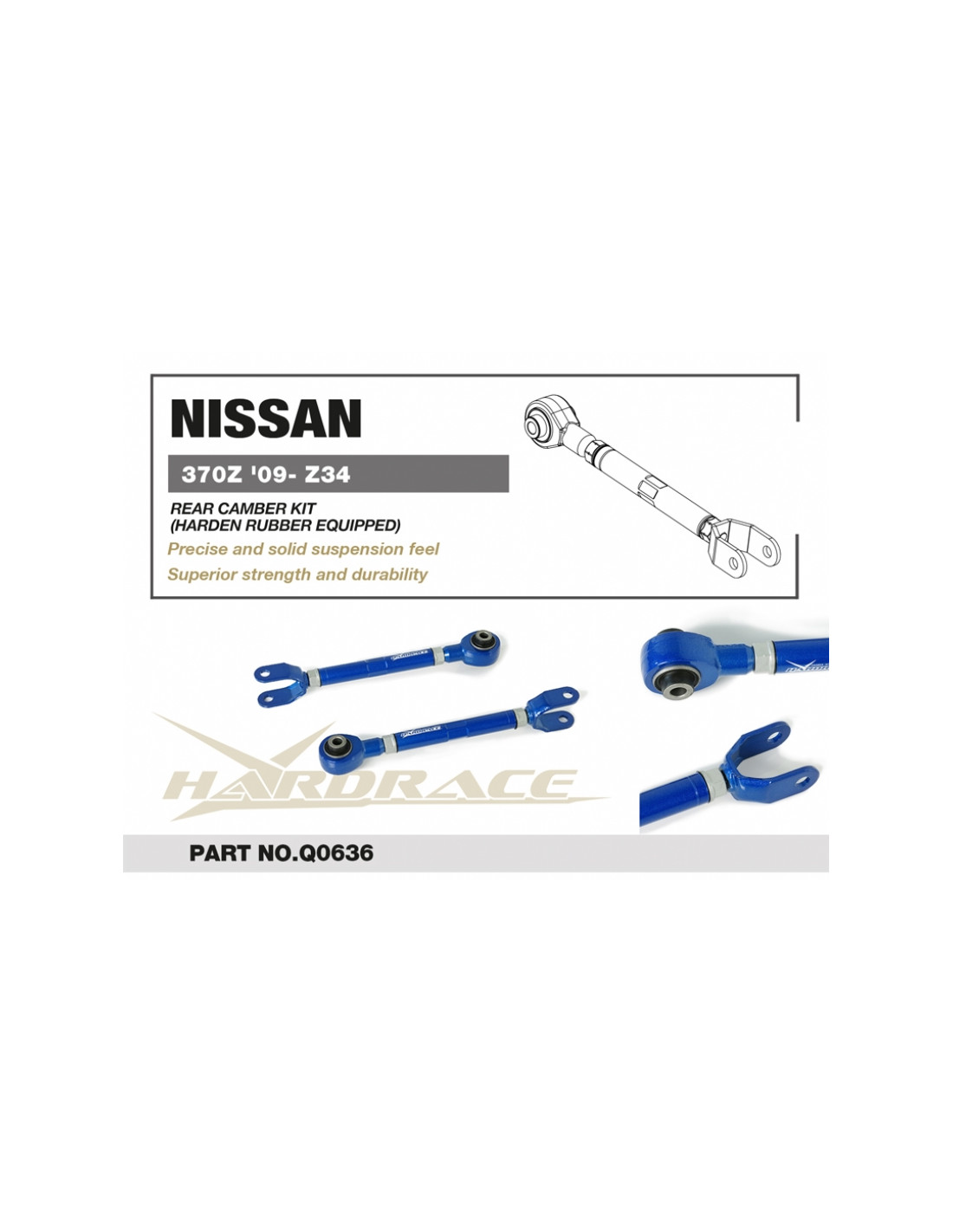 Hardrace suspension arm for Infiniti G series, M series, Nissan Skyline, Z-series. Ideal for improving steering precision, stability, and response. Manufacturer's specifications : - Harden Rubber Equipped. 2 PCS/SET Version 2