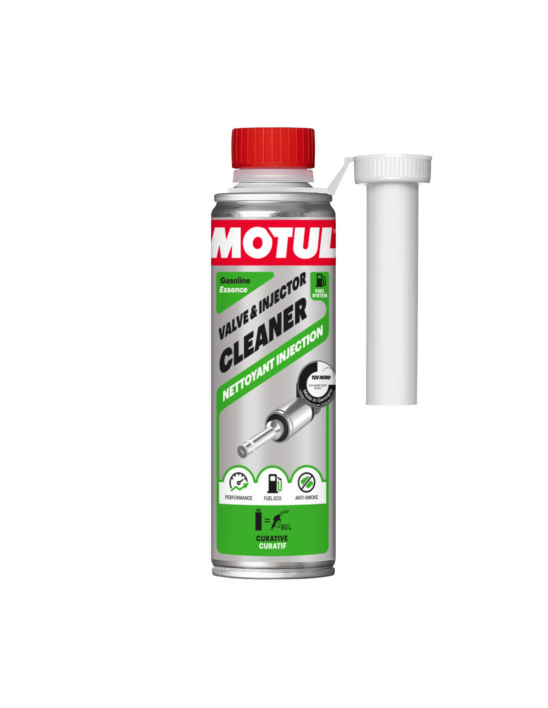 Clean your fuel systemIn depth fuel system cleaningFor all petrol engines50-70L of fuel treatment per 300ml bottleExtremely effective!Motul Fuel System Clean 300 mlThis fuel system cleaner is an additive to be added directly into the tank as an extremely powerful cleaner for your entire fuel system.Suitable for all types of petrol engine including direct injection or carburettors NA or turbo charged with or without catalytic converter. By cleaning and lubricating the fuel system it will help optimise performance.This product is especially recommended for modern engines including highly complex injection systems which are particularly sensitive to fuel quality.Sold per 300ml bottles each capable of cleaning 50-70 litres of fuel.
