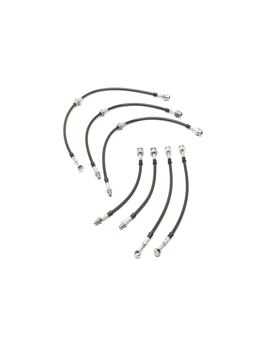 Powerful & Consistent Braking !High quality braided brake hosesMade in France by Goodridge7-line kit for Toyota Corolla 1.6i Coupé AE82 & AE86 7 Lines (84-85)Direct replacement for OEM hosesTeflon and stainless steel braided hoses with crimped fittingsProtective black cover for long lasting and discreet installationGoodridge Part No. : STY0449-7 Goodridge Braided Brake Hoses SpecificationsGoodridge braided brake hoses replace your OEM rubber lines with no modification required. OEM rubber hoses tend to flex under pressure and heat especially as they age. This can give the common feeling of "spongy" brakes as well as safety issues.Goodridge brake lines use Teflon and stainless steel braid with a black protective layer to provide a far superior hose than stock and high resistance to wear scratches salt and hydrocarbons. They improve both pedal feel and safety essential for repeated heavy braking and sporty driving.Made in France by Goodridge these high quality braided brake lines are available in other colors on demand. Generic picture.Please note: TÜV certification of the hoses is carried out only on request and incurs an additional cost contact us before placing your order. It is not possible to obtain a TÜV certificate after the hoses have been shipped.