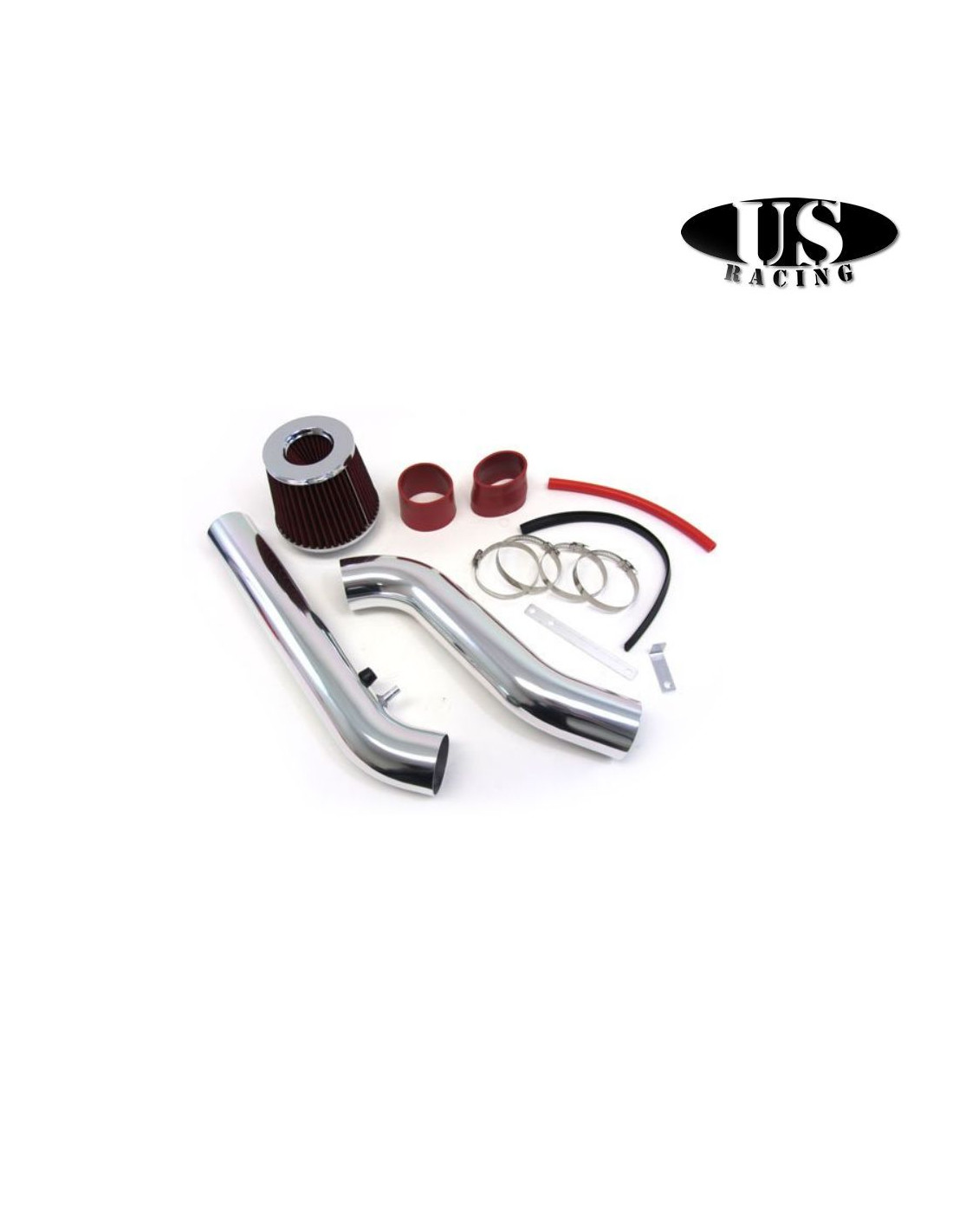 Air intake systems are designed to maximize the airflow through the stock or aftermarket manifold system. By removing the stock molded rubber intake system and adding the quality US-Racing mandrel bent intake piping with a constant radius, maximum airflow through the throttle body is achieved. The maximum airflow results in better throttle response and increases horse power. Cold air intakes have long pipes and low filters. Instead of drawing in air from the engine bay where it has had time to heat, the cold air intake draws air in from near the ground, bringing it up to the engine while it is still cool. With this Cold Air Intake, the air is more dense and can be mixed in with the fuel, leading to higher oxygen content and a more powerful explosion, driving the engine faster.