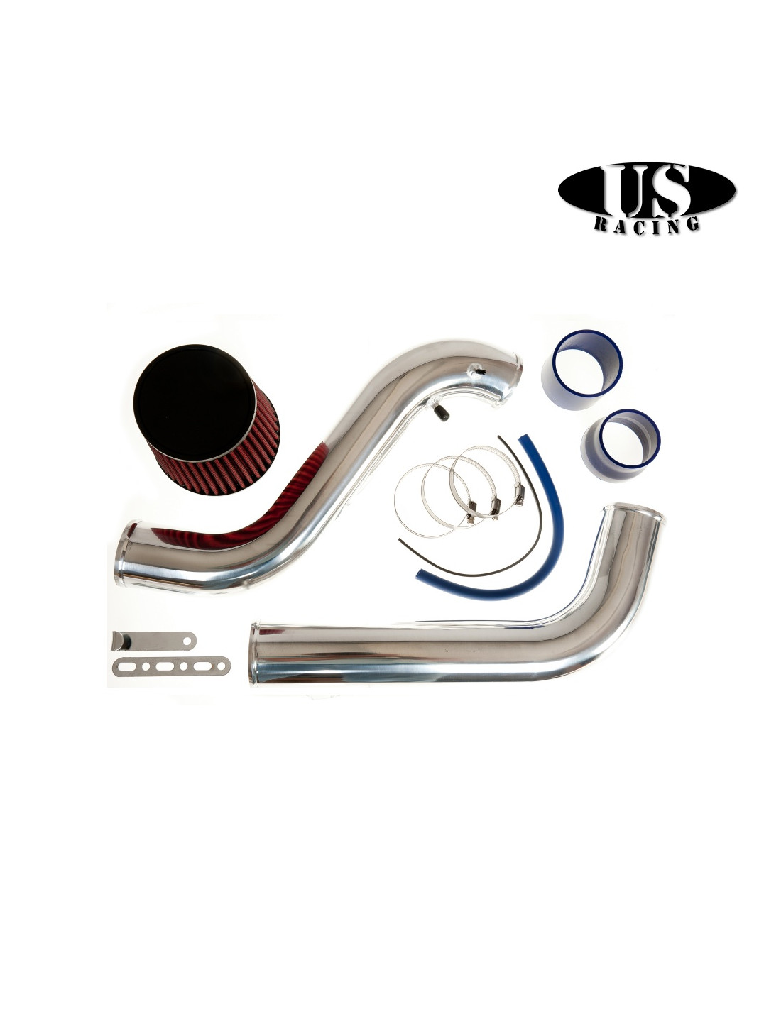 Air intake systems are designed to maximize the airflow through the stock or aftermarket manifold system. By removing the stock molded rubber intake system and adding the quality US-Racing mandrel bent intake piping with a constant radius, maximum airflow through the throttle body is achieved. The maximum airflow results in better throttle response and increases horse power. Cold air intakes have long pipes and low filters. Instead of drawing in air from the engine bay where it has had time to heat, the cold air intake draws air in from near the ground, bringing it up to the engine while it is still cool. With this Cold Air Intake, the air is more dense and can be mixed in with the fuel, leading to higher oxygen content and a more powerful explosion, driving the engine faster.