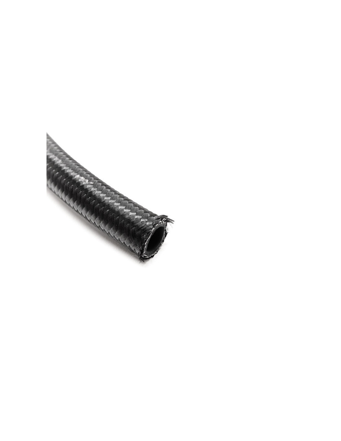 Braided Hose SpecificationsThese Dash hoses are made from nitrile and are covered with a nylon braid. Often called "aircraft hoses" their properties coming from aeronautics where they are commonly used as they are both secure and highly resistant : reliable long life protection against abrasion...When being made a second braid is embedded in the elastomer ensuring incredible pressure resistance (up to 60 bars). Our Dash hose's composition can withstand all types of fuel and lubricants such as : gasoline diesel ethanol nitromethane oil alcohol and coolants. They are ideal for all your upgrades especially in the fuel or oil circuit.Our "made to measure" service allows you to select all required elements for your set up (length diameter and joiners). Assembled in-house they are delivered directly to you ready to be installed !