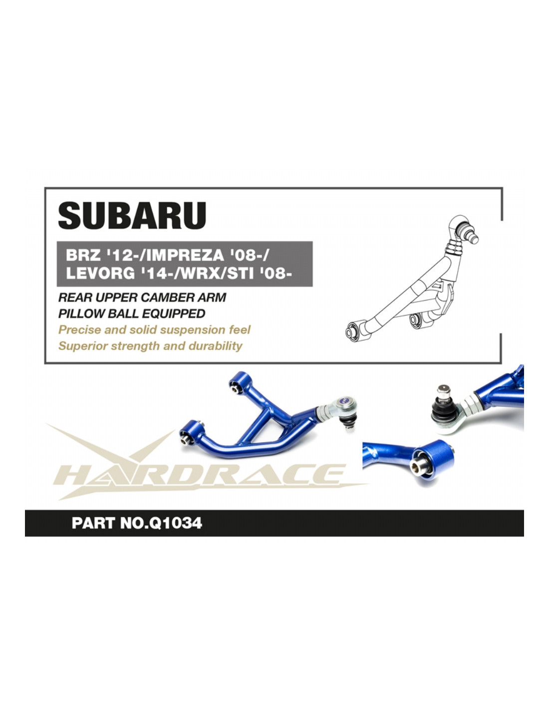 Hardrace suspension arm for Toyota, Subaru. Ideal for improving steering precision, stability, and response. Manufacturer's description: - Pillow Ball Equipped. 2PCS/SET.