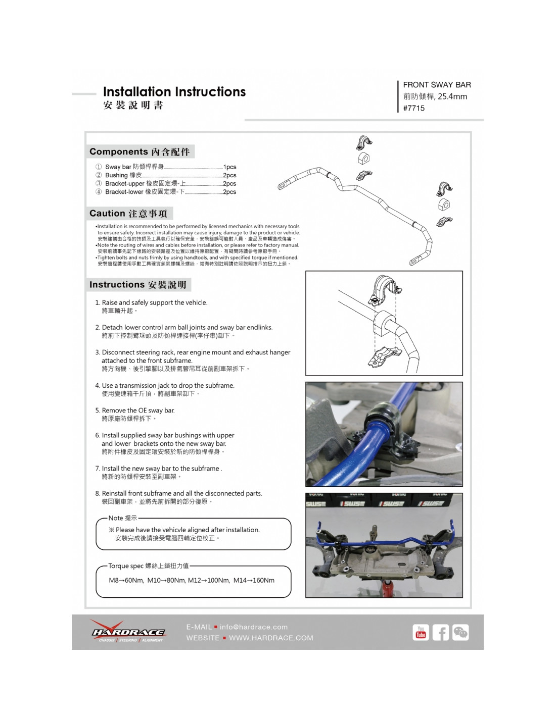 Hardrace Stabilizer Bar for Audi, Seat, Skoda, Volkswagen. Ideal for improving steering precision, stability, and response. Manufacturer's Specifications : - Fits FWD cars ONLY. 25.4 mm 7 PCS/SET