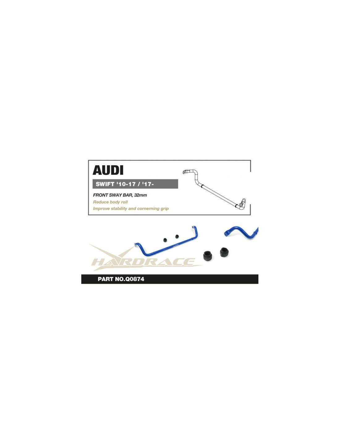 Hardrace Stabilizer Bar for Audi A4, A5, S4/RS4, S5/RS5. Ideal for improving driving precision, ride stability, and steering response. Manufacturer's Specifications : - 32 mm 3 PCS/SET
