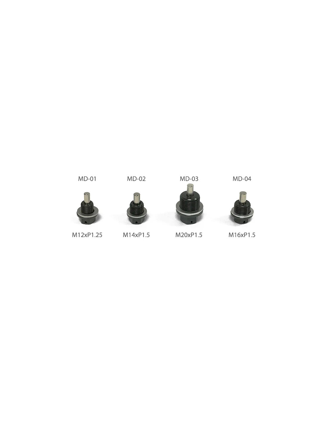 GReddy MD-02 Magnetic Oil Drain PlugAnodized aluminum cap with 5000 Gauss neodymium magnetM14x1.5 thread to suit Honda Mitsubishi Mazda SuzukiFits in place of the originalCaptures metal particles in oilMade in Japan by GReddyGReddy part number : 13901302 GReddy MD-02 Magnetic Sump Plug M14x1.5 SpecificationsThis GReddy anodized aluminum drain plug incorporates a powerful 5000 Gauss neodymium magnet capable of trapping metal particles in the oil. This direct fit plug helps to reduce the amount of abrasive residue in the engine thereby optimizing its life.This MD-02 part number features an M14x1.5 thread that is compatible with most Honda Mitsubishi Mazda and Suzuki oil pans.
