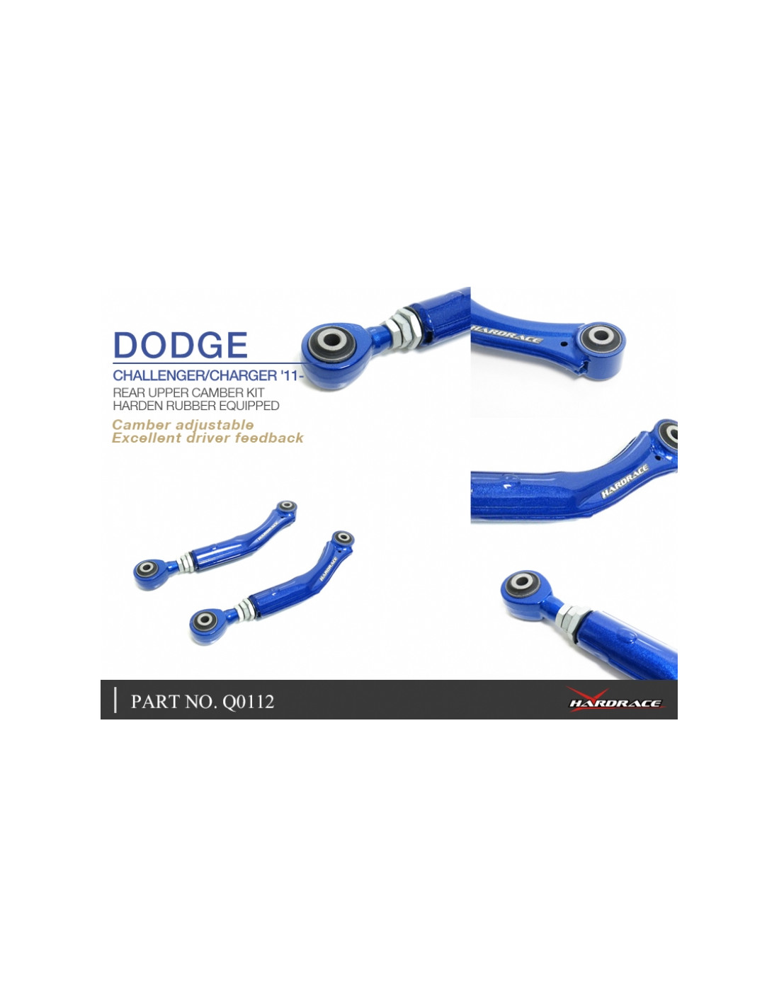 Hardrace Suspension Arm for Rear Upper Camber Kit Dodge Challenger, Charger. Ideal for improving steering precision, stability and response. Features from the manufacturer (original description in English): - Harden Rubber Equipped 2 PCS/SET For CHALLENGER 2011 and later