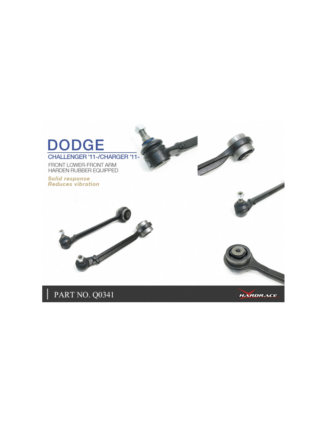 Hardrace Front Lower Arm Suspension Arm for Dodge Challenger, Charger. Ideal for improving steering precision, stability, and response. Manufacturer's specifications : - Harden Rubber Equipped 2 PCS/SET For CHALLENGER 2011 and later