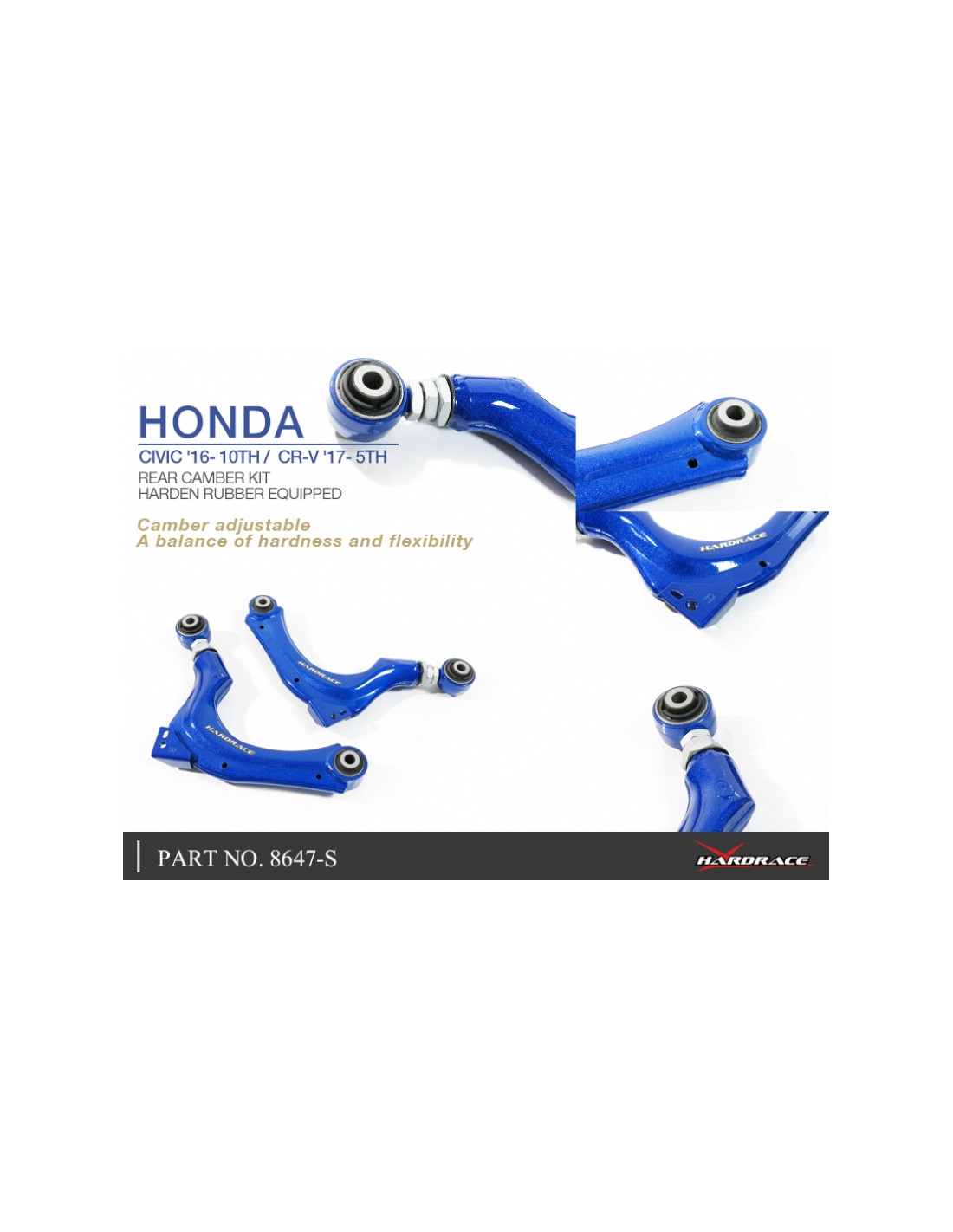 Hardrace suspension arm for Honda Civic, CR-V. Ideal for improving steering precision, stability, and response. Manufacturer's specifications : - Harden Rubber Equipped. 2 PCS/SET