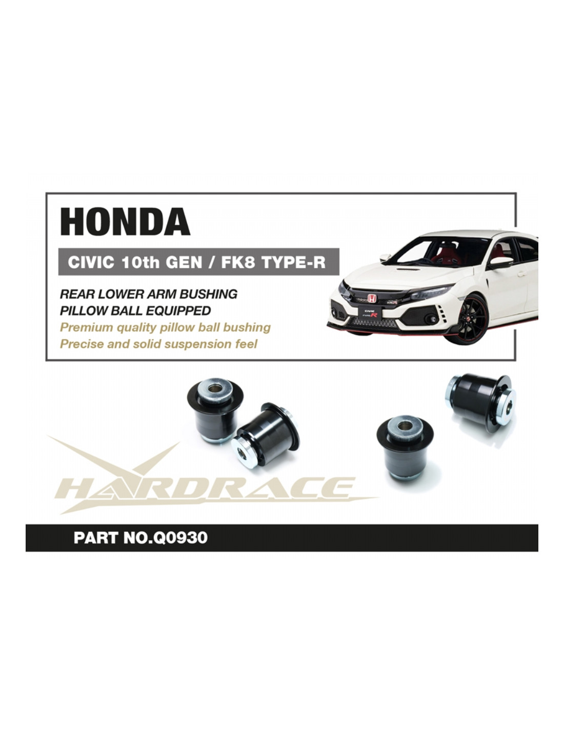 Hardrace silent block for Honda Civic. Ideal for improving driving precision, trim stability, and steering response. Features from the manufacturer (original description in English): - Pillow Ball Equipped 2PCS/SET