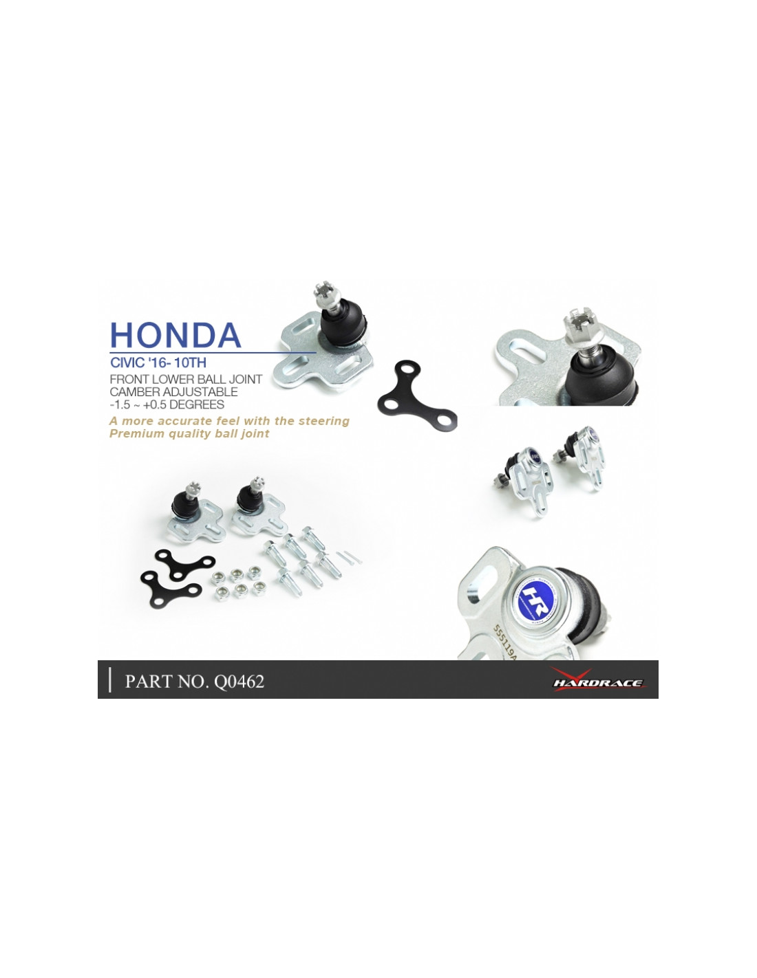 RC Hardrace Front Lower Ball Joint. Ideal for improving driving precision, trim stability, and steering response. Manufacturer's Description: - Adjustable - Camber -1.5°~+0.5° M12 Ball Stud * CIVIC 10th: Not for US Spec * CIVIC 11th: For China Spec Only 2 PCS/SET