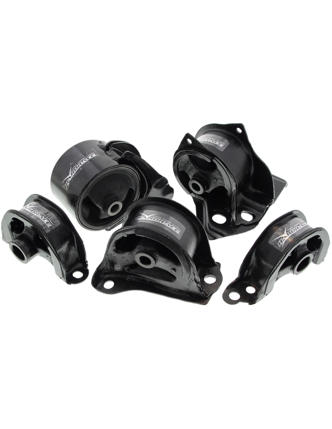 Hardrace engine mount for Honda Civic, CRX, Integra. Ideal for improving driving precision, trim stability, and steering response. Manufacturer's specifications : - For MT Use 5 PCS/SET Applied on EG D15B / Del Sol B16A RH/LH/Rear mount hardness: Shore 70A Front lower mount hardness: Shore 75A