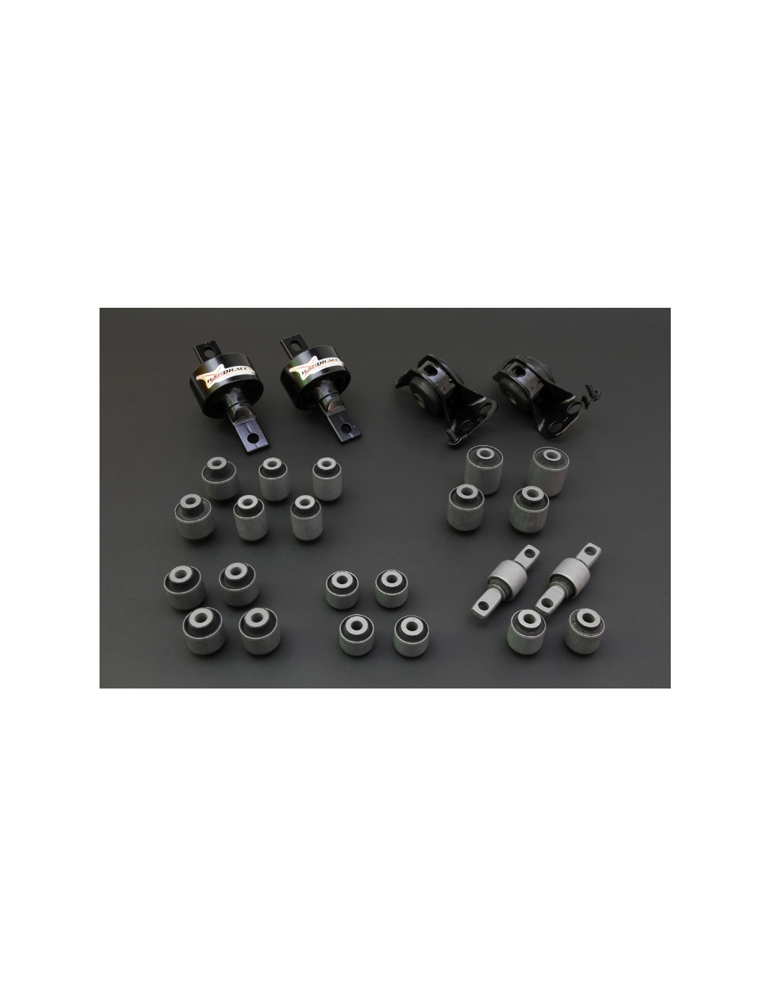 Hardrace silent block for Honda Civic. Ideal for improving driving precision, trim stability, and steering response. Manufacturer's specifications : - Harden Rubber Equipped 26 PCS/SET USDM/JDM