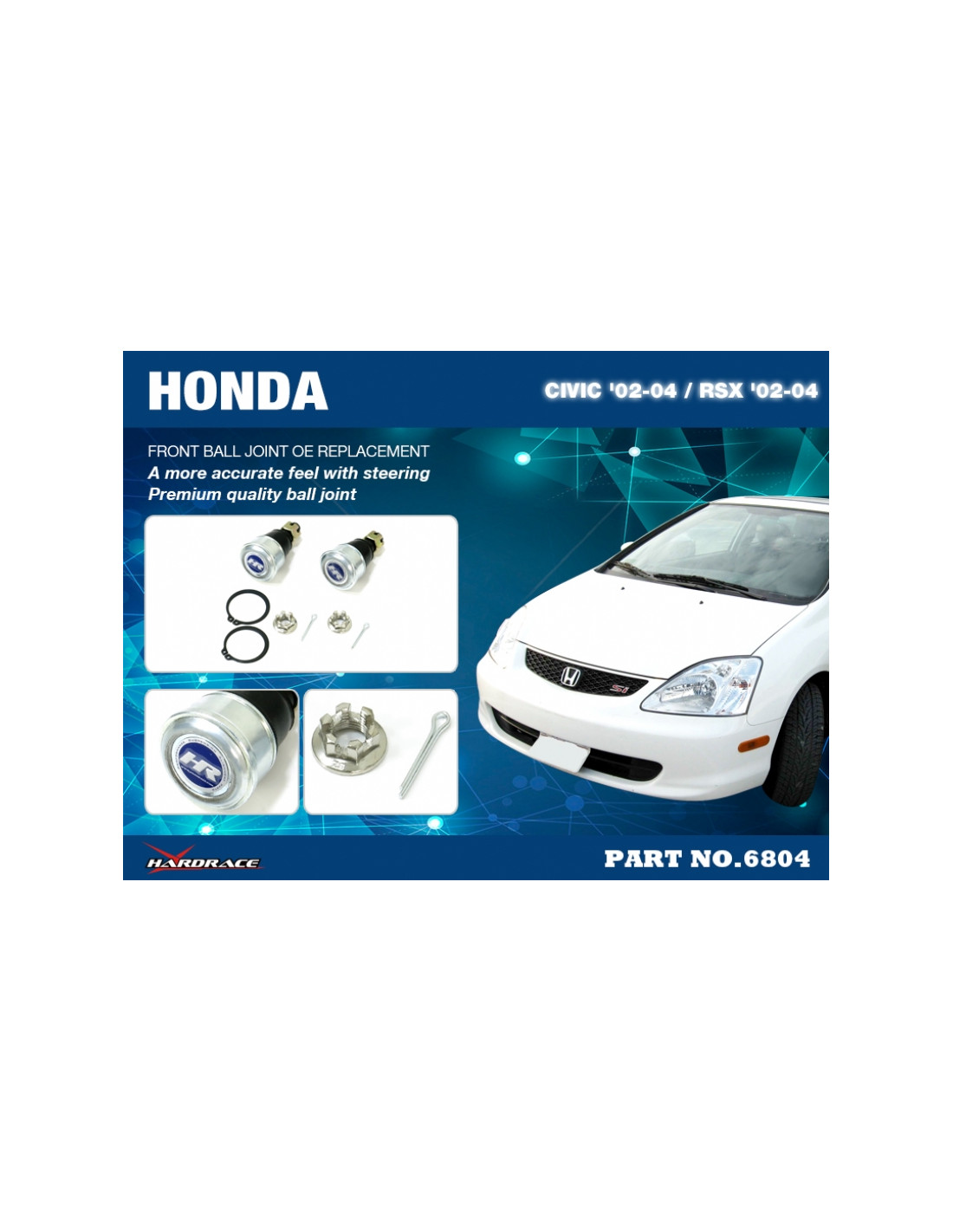 RC Hardrace Ball Joint for Honda Civic, RSX. Ideal for improving steering precision, stability, and response. Manufacturer's Description: - OE Replacement - M12 Ball Stud *RSX/Integra: For Base Model '02-06 & Type-S '02-04 2 PCS/SET
