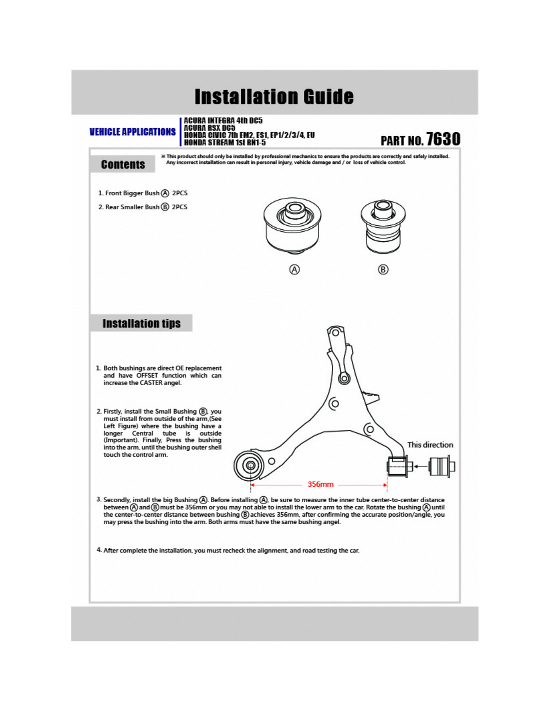 Hardrace silent block for Honda Civic, Integra, Stream. Ideal for improving driving precision, trim stability, and steering response. Features from the manufacturer (original description in English): - Pillow Ball Equipped Offset/Increase Caster 4 PCS/SET