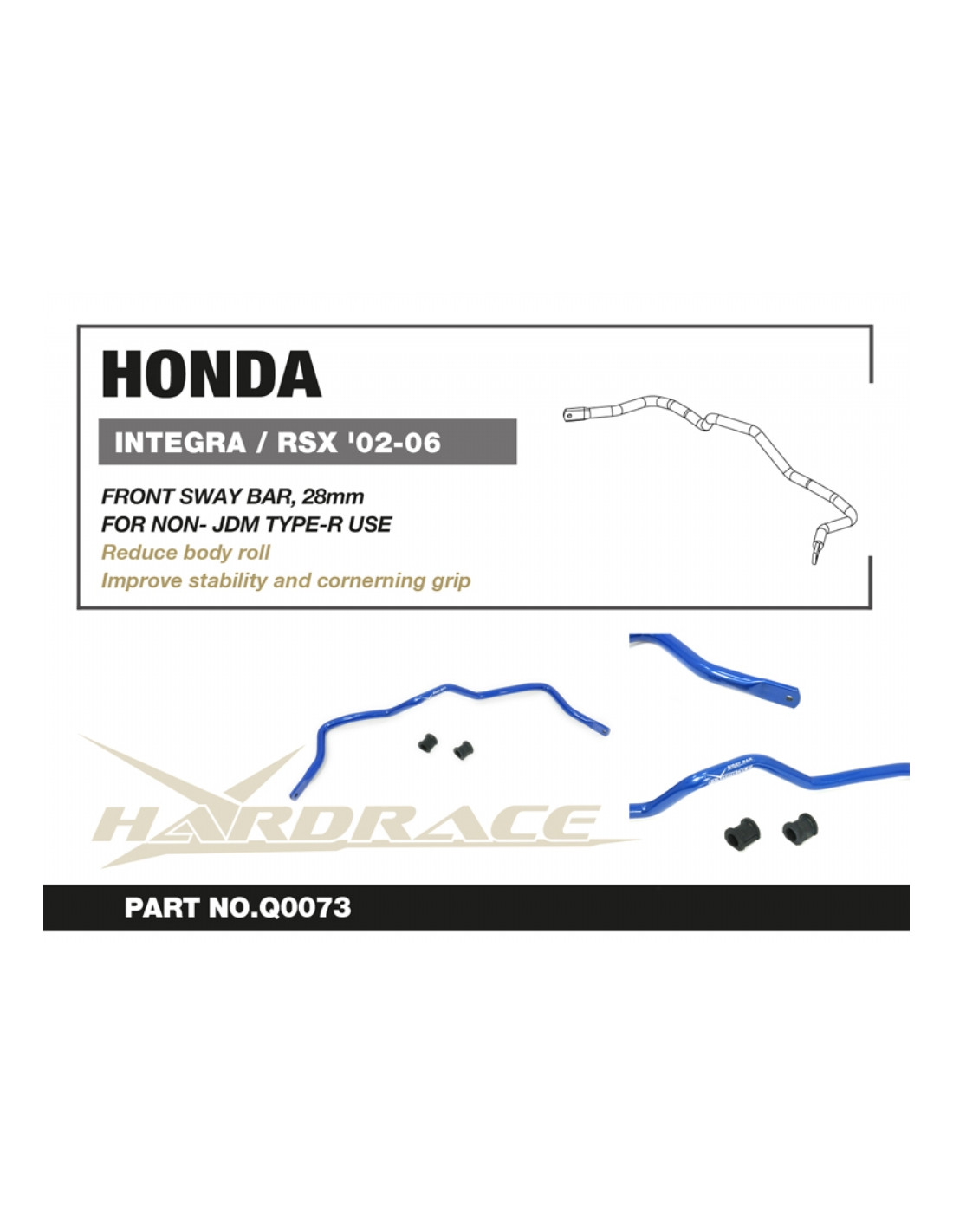 Hardrace Stabilizer Bar for Honda Integra, Civic. Ideal for improving steering precision, stability, and response. Manufacturer's Specifications : - 28 mm * DC5: Not For JDM Type-R Use 3 PCS/SET
