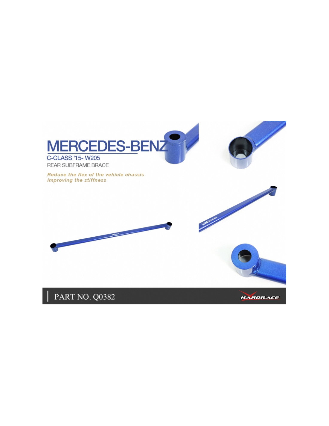 Hardrace reinforcement bar for Mercedes C-Class. Ideal for improving driving precision, ride stability and steering response. Features from the manufacturer (original description in English): - * Not for C400/C43/C450/C63 AMG * Not compatible with #Q0987 Subframe Anti-vibration Insert 1 PCS/SET
