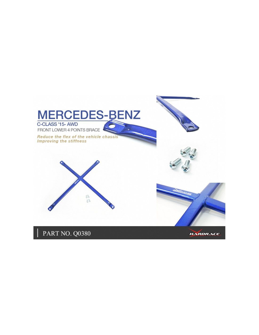 Hardrace reinforcement bar for Mercedes C-Class, GLC-Class. Ideal for improving driving precision, ride stability and steering response. Features from the manufacturer (original description in English): - * C W205: For AWD Use * GLC X253: For RWD & AWD Use 1 PCS/SET