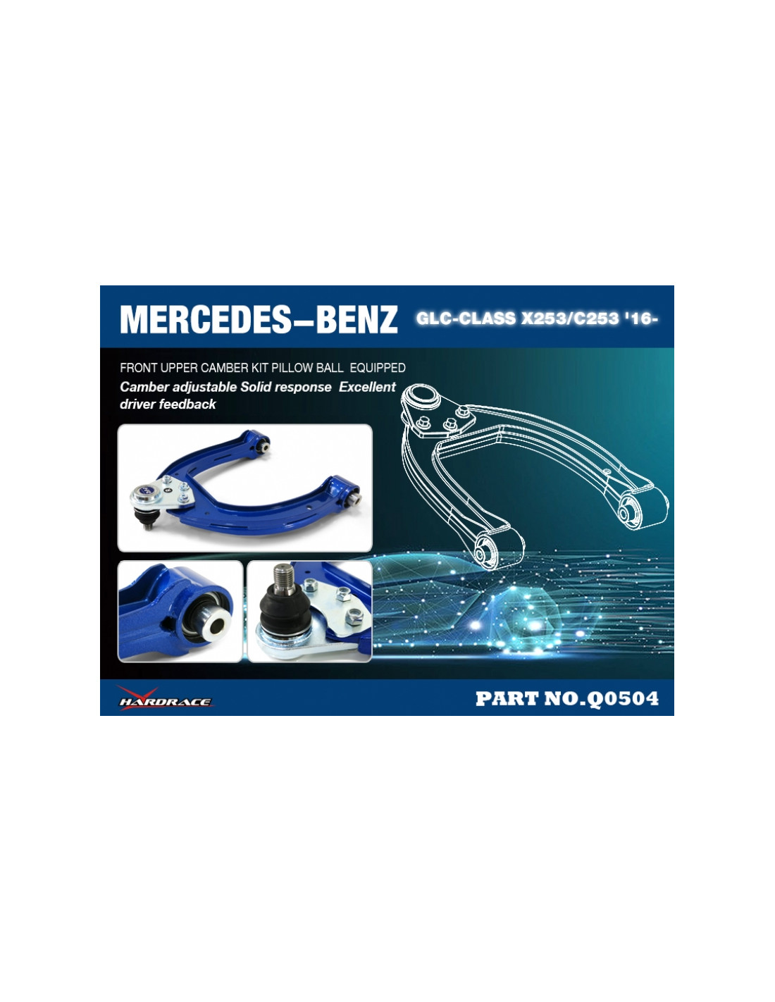 Hardrace suspension arm for Mercedes C-Class, E-Class, GLC-Class. Ideal for improving steering precision, stability, and response. Manufacturer's description: - Pillow Ball Equipped 2 PCS/SET
