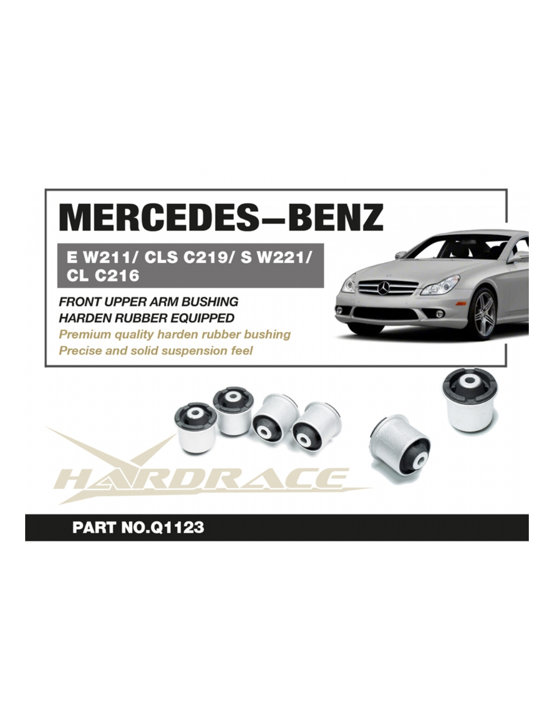 Hardrace silent block for Mercedes E-class, Cls-class, S-class, Cl-class. Ideal for improving driving precision, trim stability and steering response. Features from the manufacturer (original description in English): - Harden Rubber Equipped 4 PCS/SET