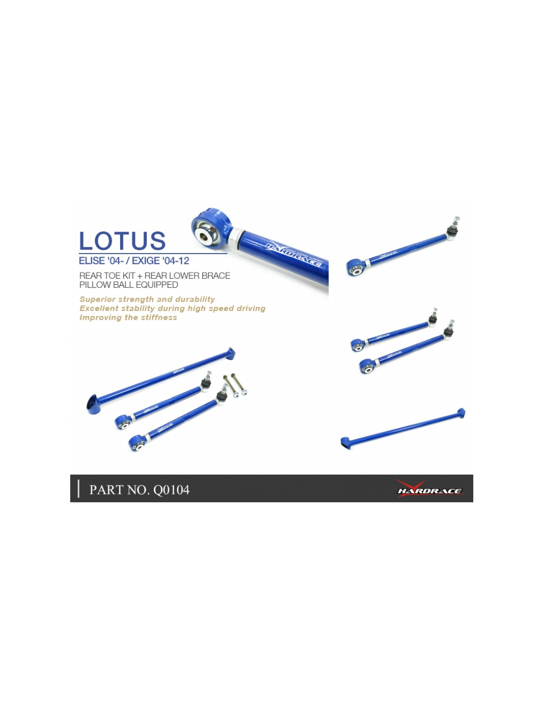 Hardrace Suspension Arm for Rear Toe Kit + Rear Lower Brace Lotus Elise, Exige. Ideal for improving steering precision, stability and response. Manufacturer's Specifications : - For Toyota Engined Models Pillow Ball Equipped 3 PCS/SET