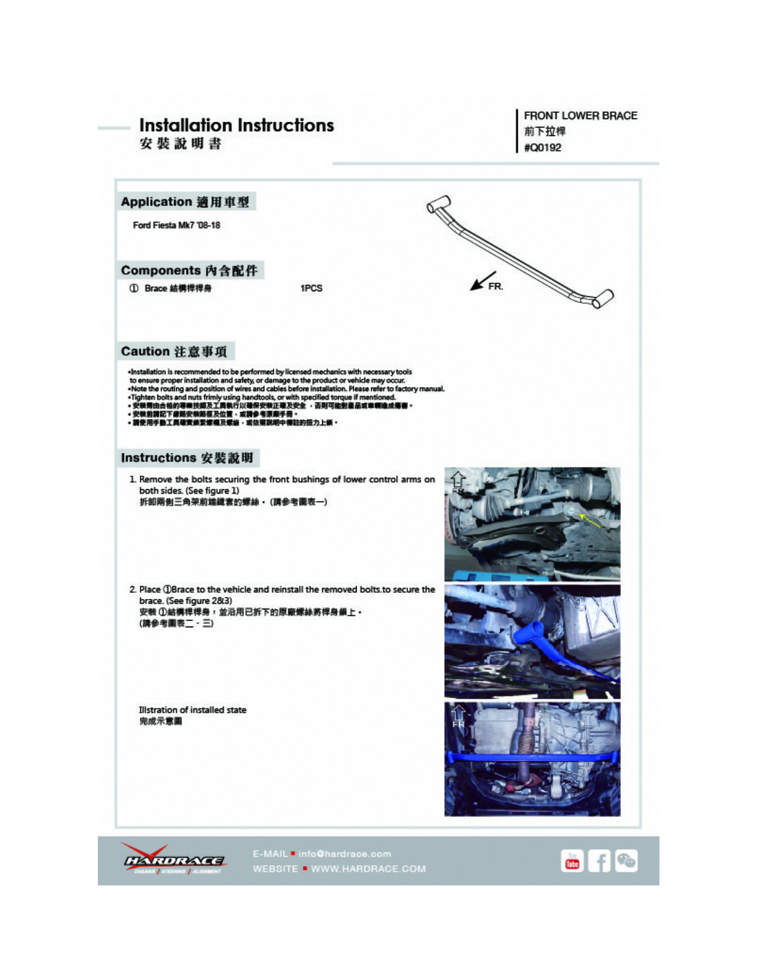 Hardrace strut brace for Ford Fiesta. Ideal for improving steering precision, stability, and response. Manufacturer's specifications : - 1 PCS/SET For 2013-2017 model use Not for ST use