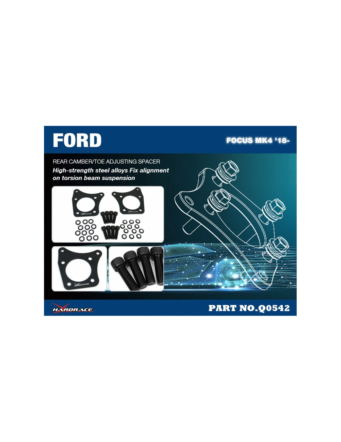 Hardrace silent block for Ford Focus. Ideal for improving driving precision, trim stability and steering response. Features from the manufacturer (original description in English): - 2 PCS/SET TOE IN FROM 0.2° TO 0.1° ADD NEGATIVE CAMBER BY 1° * For torsion beam rear axle
