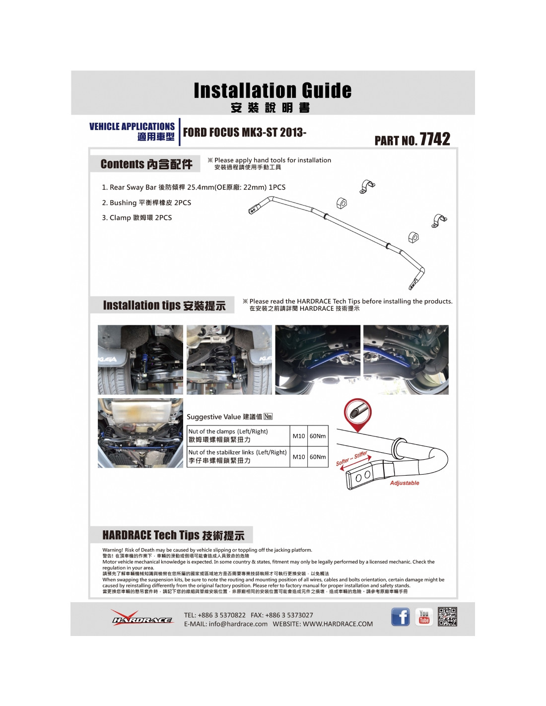 Hardrace Stabilizer Bar for Ford Focus. Ideal for improving driving precision, ride stability, and steering response. Manufacturer's Specifications : - *** For ST Hatchback Use Only 25.4 mm 5 PCS/SET