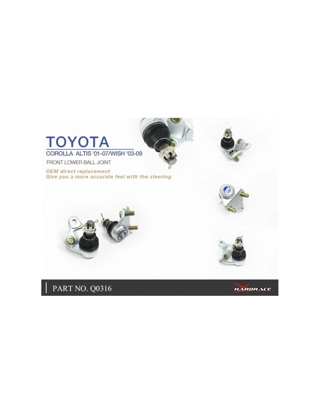 Hardrace RC Ball Joint for Toyota Corolla/Altis/Auris, Wish. Ideal for improving driving precision, trim stability and steering response. Manufacturer's Specifications : - 2 PCS/SET OE TYPE