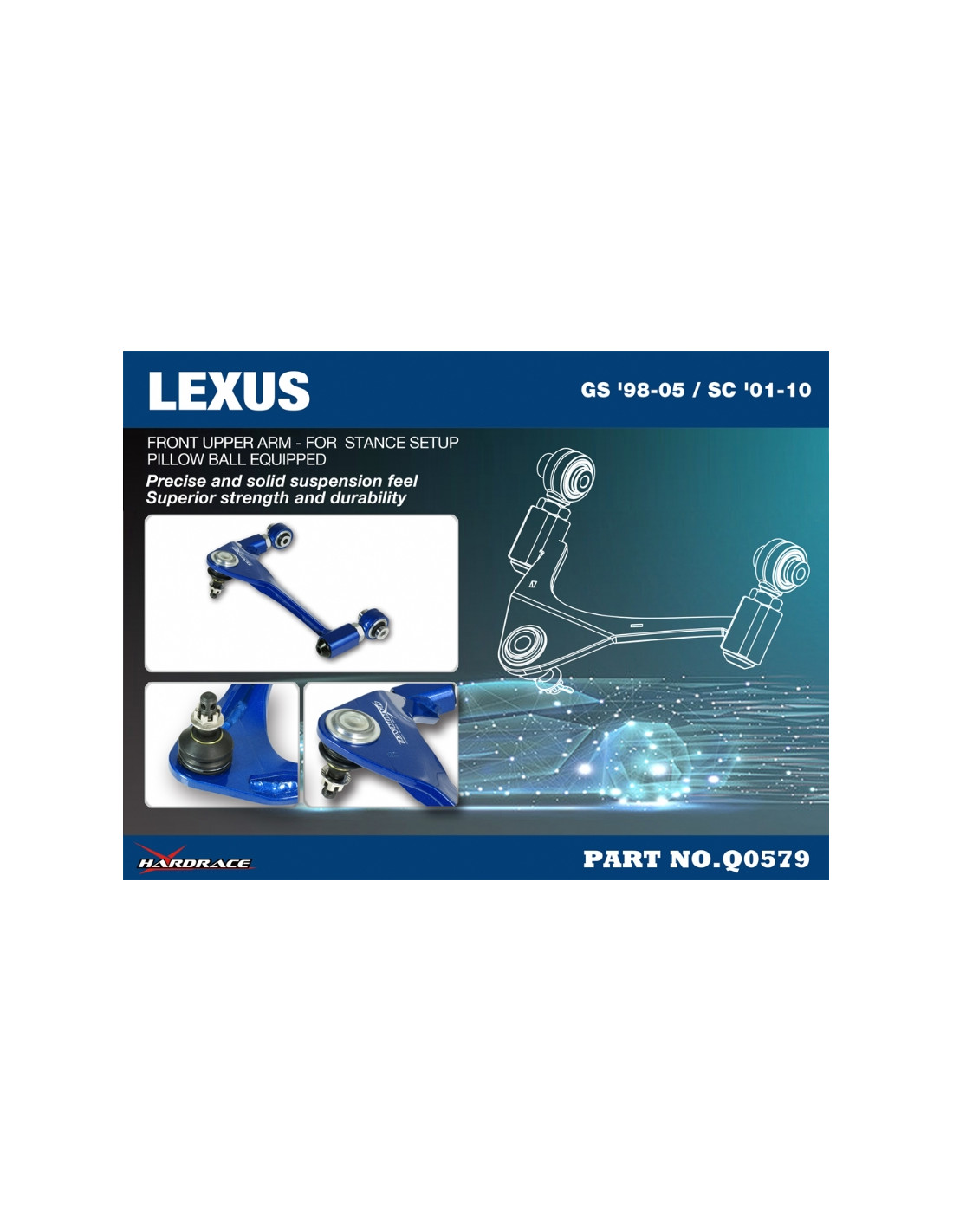 Hardrace Suspension Arm for Lexus GS, SC, Toyota Aristo. Ideal for improving steering precision, stability, and response. Manufacturer's Specifications : - For Extreme Camber & Lowered Use Pillow Ball Equipped 2 PCS/SET