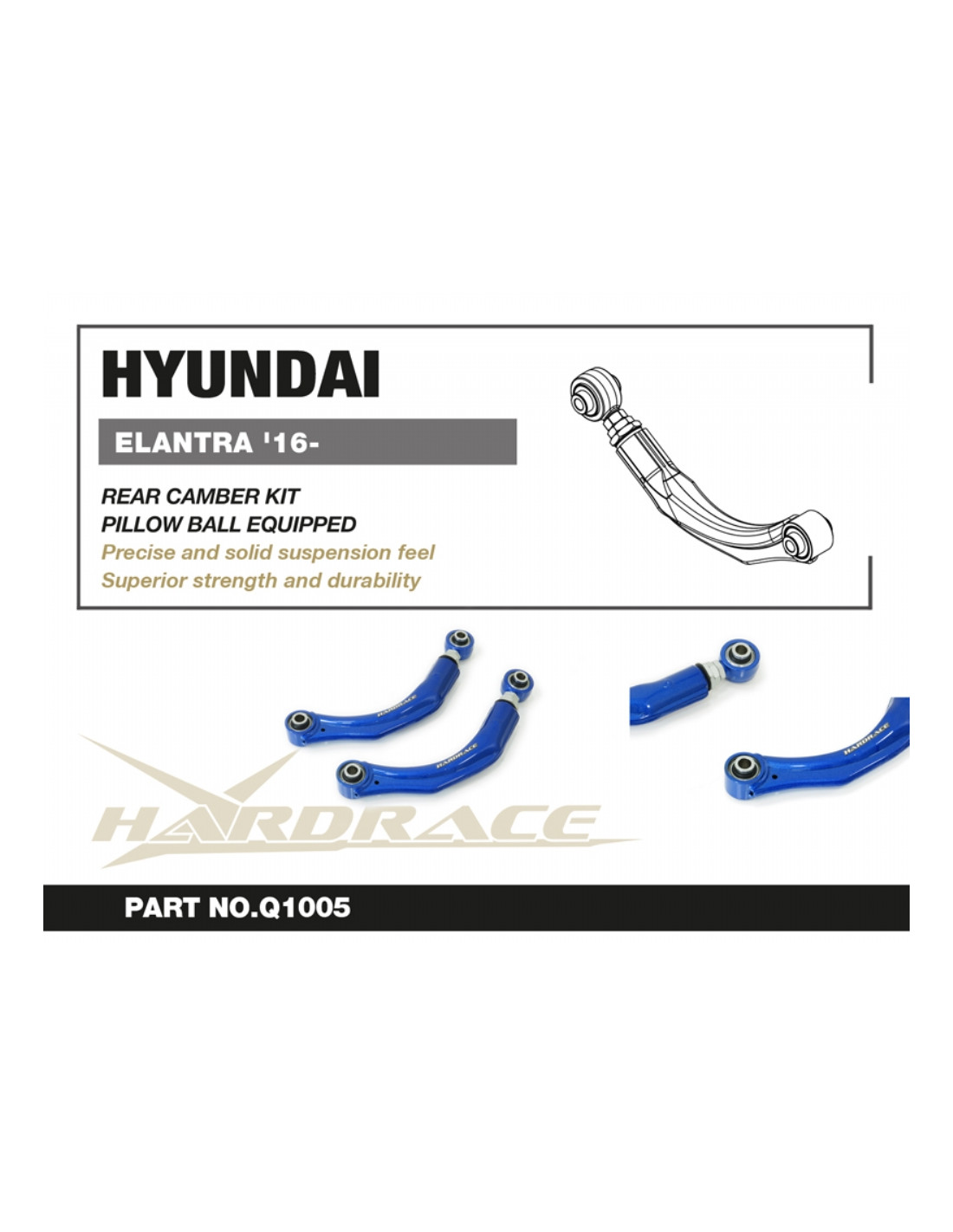 Hardrace Suspension Arm for Hyundai, Kia. Ideal for improving steering precision, stability, and response. Manufacturer's Specifications : - Pillow Ball Equipped *For Multi-link rear axle *Including I30 N/Veloster N 2 PCS/SET