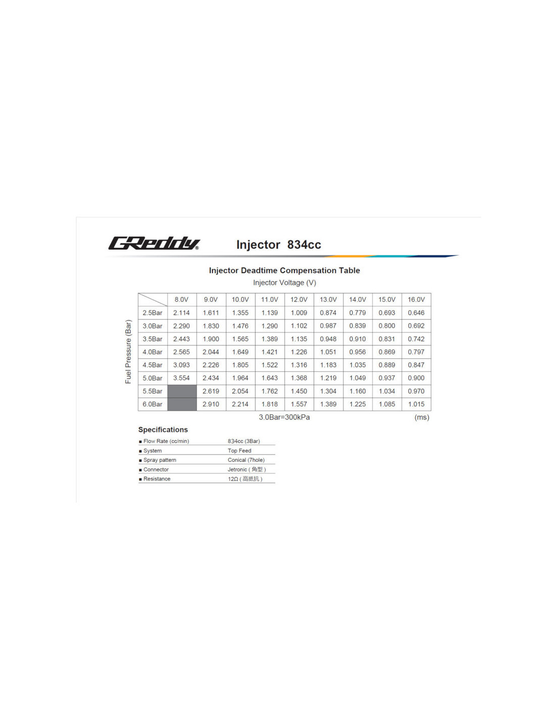 GReddy Injector Kit To suit Toyota 2JZ-GTE VVTi & non-VVTi Flow rate(s) : 695 cc/min, 834 cc/min, 931 cc/min Type : top feed Direct OEM replacement Flawless quality and reliability Fuel rail also available GReddy part number(s) : 13913220, 13913221, 13913222, 13913320, 13913321, 13913322 GReddy Injector Kit for Toyota 2JZ-GTE Specifications This GReddy kit, specially designed for the 2JZ-GTE (VVTi and non-VVTi) engine, includes a set of 695 cc, 834 cc or 931 cc injectors (as required) with connectors, terminals and sleeves to significantly improve the fuel supply to the turbocharged Toyota 6-cylinder. Developed to be 100% "plug and play", this kit combines top quality and reliability and can be installed in place of the OEM components, with no modifications required. For even greater performance, these injectors are also available in kits with their own dedicated fuel rail. This fuel rail is fully compatible with the stock surge tank. Technical Data P/N 13913220 / 13913320 Flow rate (cc/min) : 695 (3 bar) System : top feed Spray pattern : conical (9 holes) Connector : Jetronic (square) Resistance : 12 Ω P/N 13913221 / 13913321 Flow rate (cc/min) : 834 (3 bar) System : top feed Spray pattern : conical (7 holes) Connector : Jetronic (square) Resistance : 12 Ω P/N 13913222 / 13913322 Flow rate (cc/min) : 931 (3 bar) System : top feed Spray pattern : conical (7 holes) Connector : Jetronic (square) Resistance : 12 Ω