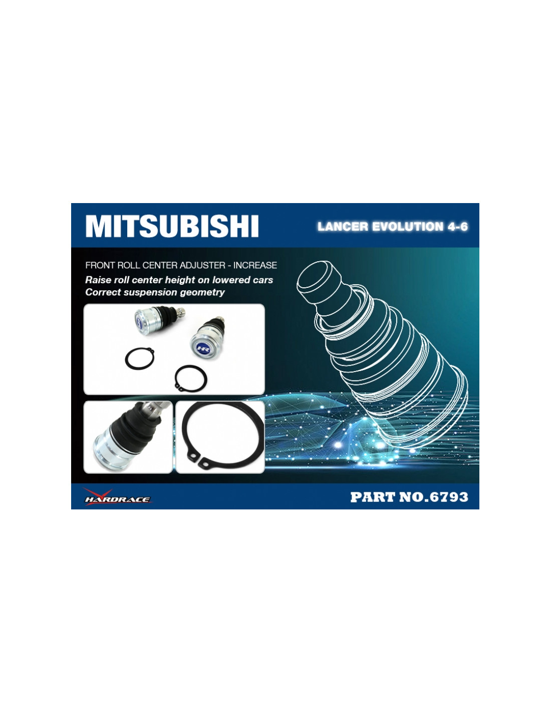 Hardrace RC ball joint for Mitsubishi Lancer evolution. Ideal for improving driving precision, trim stability and steering response. Features from the manufacturer (original description in English): - INCREASE 15MM 2PCS/SET *EVO6: For TME GSR & TME RS2 only