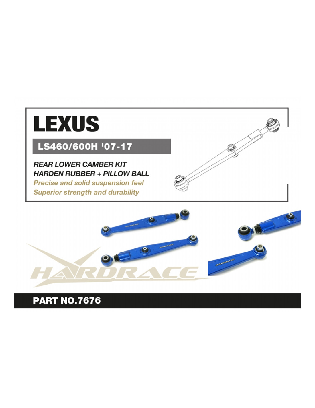 Hardrace suspension arm for Lexus LS. Ideal for improving steering precision, stability, and response. Manufacturer's description: - Harden Rubber + Pillow Ball 2 PCS/SET