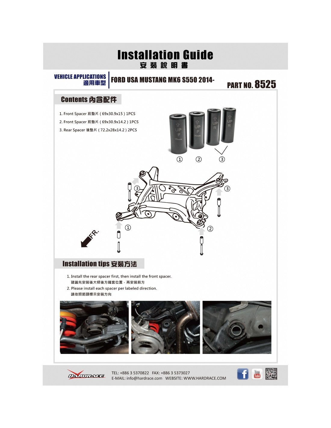 Hardrace silent block for Ford Mustang. Ideal for improving driving precision, ride stability, and steering response. Manufacturer's specifications : - 4 PCS/SET