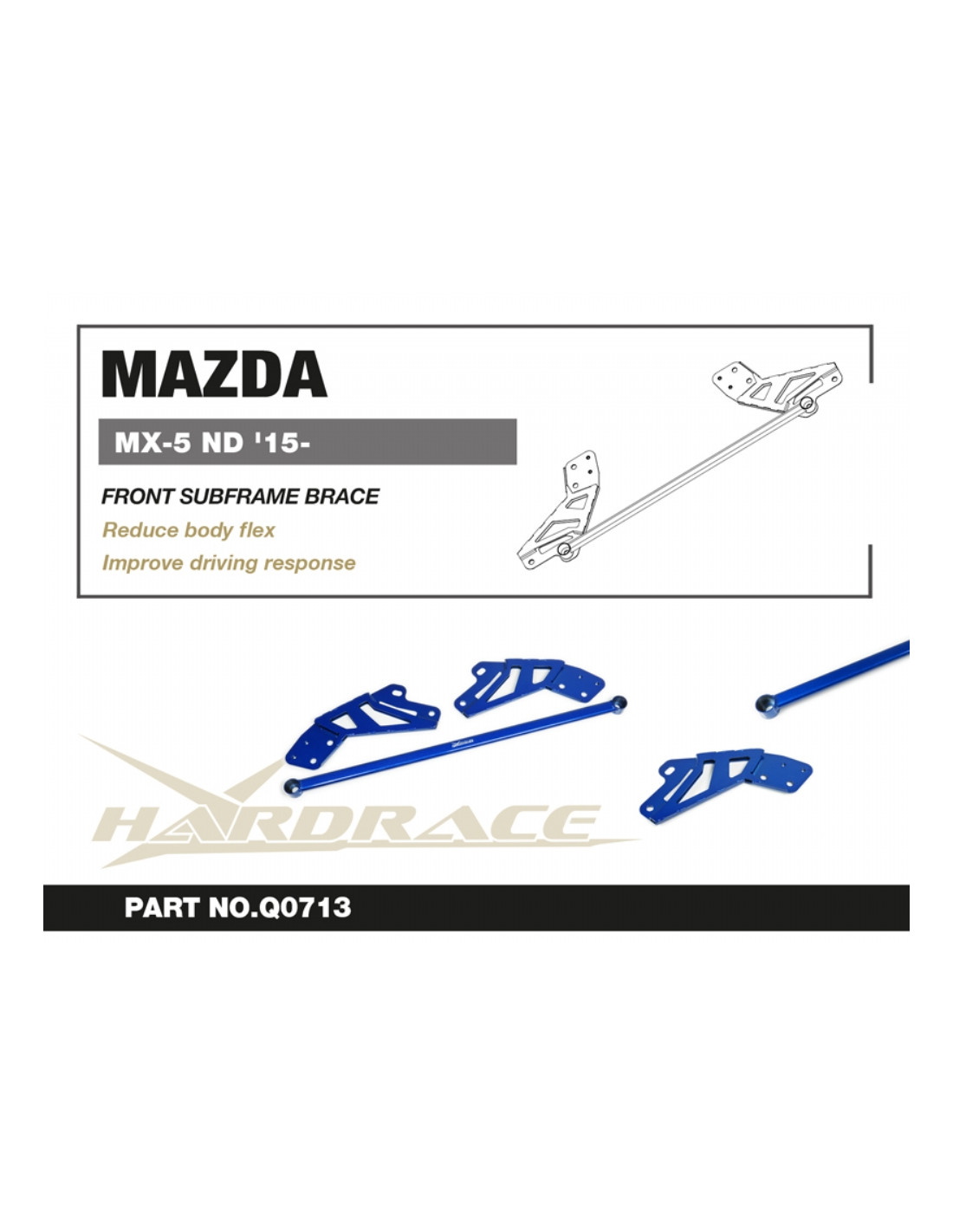 Hardrace strut brace for Mazda MX-5 Miata. Ideal for improving steering precision, stability, and response. Manufacturer's Description: - 3 PCS/SET