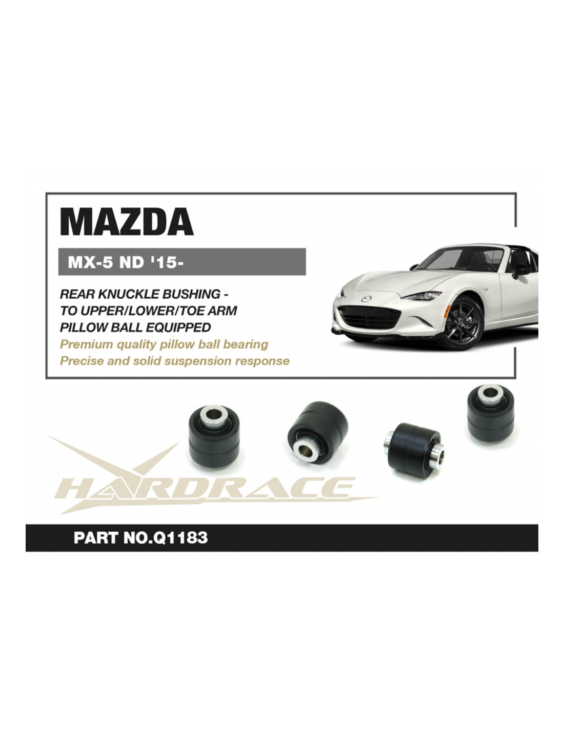 Hardrace silent block for Mazda MX-5 MIATA. Ideal for improving driving precision, trim stability, and steering response. Features from the manufacturer (original description in English): - Pillow Ball Equipped 2 PCS/SET