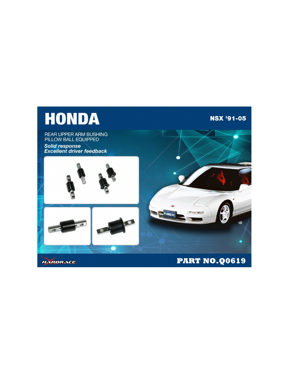 Hardrace silent block for Honda NSX. Ideal for improving driving precision, trim stability, and steering response. Features from the manufacturer (original description in English): - Pillow Ball Equipped. 4 PCS/SET