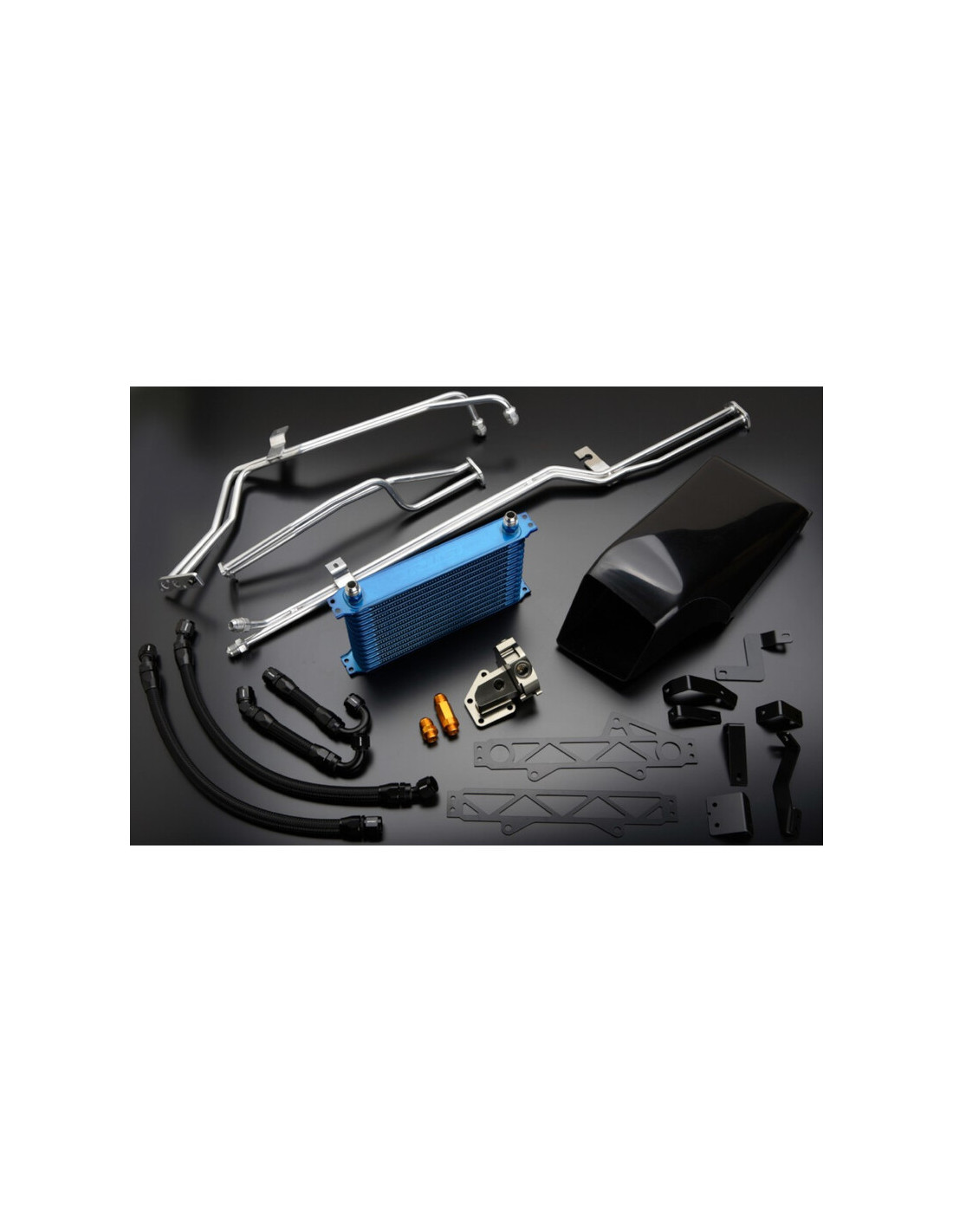 GReddy Transmission Oil Cooler Kit For Nissan GT-R Engine code: VR38DETT Ideal for intensive use Drastic reduction of the oil temperature Built-in thermostat Comes complete with all accessories required for installation: hoses, bolts, brackets, fittings, etc. GReddy part numbers: 12024810 / 12024811 / 12024814 Made in Japan GReddy DCT Oil Cooler Kit for Nissan GT-R R35 Specifications Specially designed for the Nissan GT-R R35, this GReddy cooler allows to significantly lower the oil temperature of the OEM 6-speed dual clutch gearbox, especially under heavy use. On the GT-R, when the temperature rises above 140°C, the failsafe engages and the throttle remains closed. With this kit, you'll be able to exploit the transmission's capabilities for longer while improving its reliability. GReddy has developed an air-cooled oil cooler core that sits inside the left front fender and works in conjunction with the standard water-cooled heat exchanger. Together they keep the GR6 gearbox oil at the optimum temperature, even during low temperature starts, for extended performance on the road and track. The 13-row cooler is housed behind a GT-R model-specific fibre duct, compartmentalised like the stock one, for optimum fresh air supply. Made from anodised aluminium, the supplied oil block with built-in thermostat helps to stabilise oil temperature and provide better oil control by isolating the line of the genuine heat exchanger and the line of the DCT cooler core. Easy to install, 14mm diameter aluminium pipes are used to connect the oil block to the DCT cooler. The shortened piping route optimises flow and reduces the loss of oil pressure from the DCT pump. Size 10 fittings and fire-resistant nylon hoses ensure excellent safety. Kit Contents Oil cooler core (13 rows) Oil block (built-in thermostat) Aluminium piping FRP air supply duct with partition plate Hoses, fittings and stays Please note: This kit is available for the 2009-2011 (CBA-R35), 2012-2016 (DBA-R35) and 2017+ (4BA-R35) GT-Rs. It requires a GReddy specific washer tank p/n 13526110 for CBA-R35/DBA-R35 and 13526111 for 4BA-R35, sold separately.