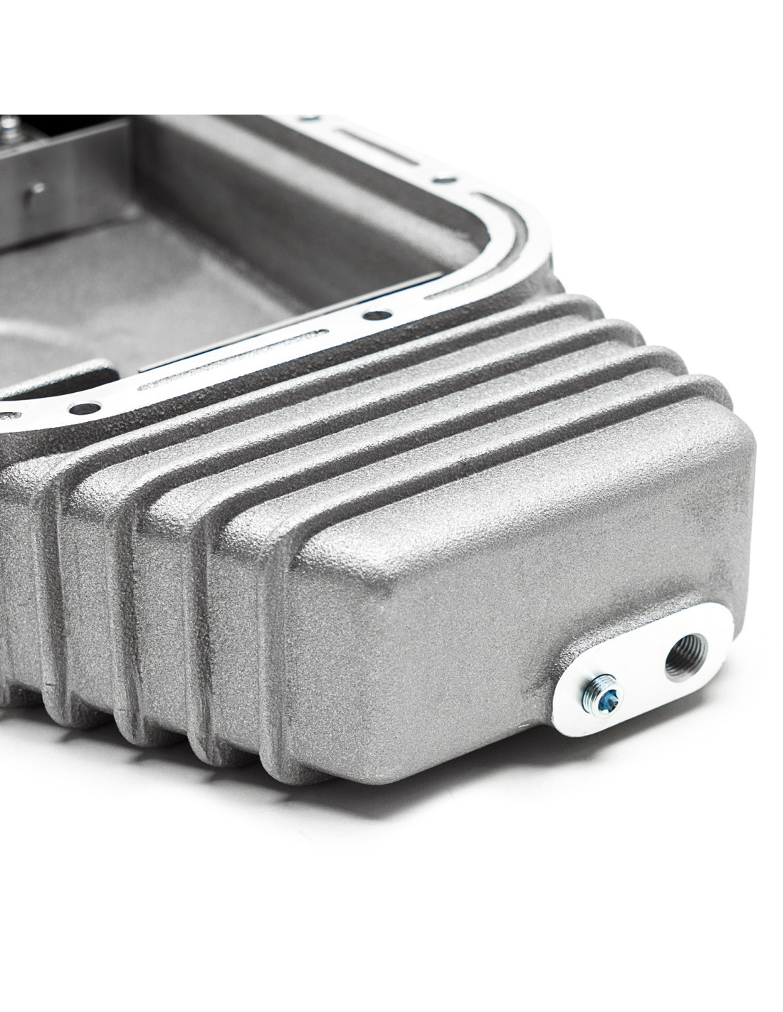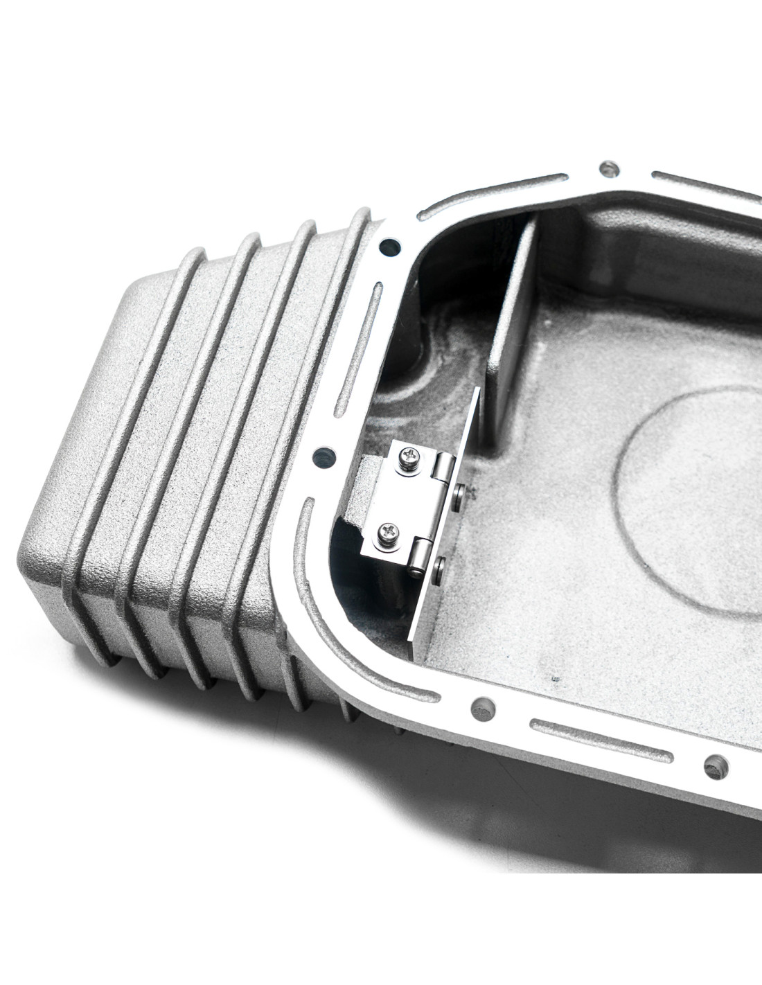 Improved cooling and reliability ! Baffled oil pan For Nissan SR20DET engine Made in Japan high quality finish Larger oil capacity than stock Optimized oil cooling Limits oil surge Oil pressure is always stable Ideal for intensive use (track days competitive use...) "Plug & play" installation without modifications GReddy part no. : 13525901 Greddy High Capacity Baffled Oil Pan for SR20DET Specifications This high capacity oil pan offers two advantages : better oil cooling and better engine protection reducing the risk of oil surge : Thanks to a larger capacity than the stock oil pan this one allows the oil to "rest" longer before going into the lubrication circuit. Oil cooling is improved its design helps to disperse heat. The larger capacity combined with the baffle partitions ensure that a small oil reserve is always available at the oil pump's point of suction. This way even in intensive use with high centrifugal force your oil will always be at a stable pressure. This high capacity oil pan goes in place of the stock oil pan. Made in Japan by GReddy with a high quality finish and perfect fitment. Please note: the SR20 inscription may or may not be present depending on the shipment.